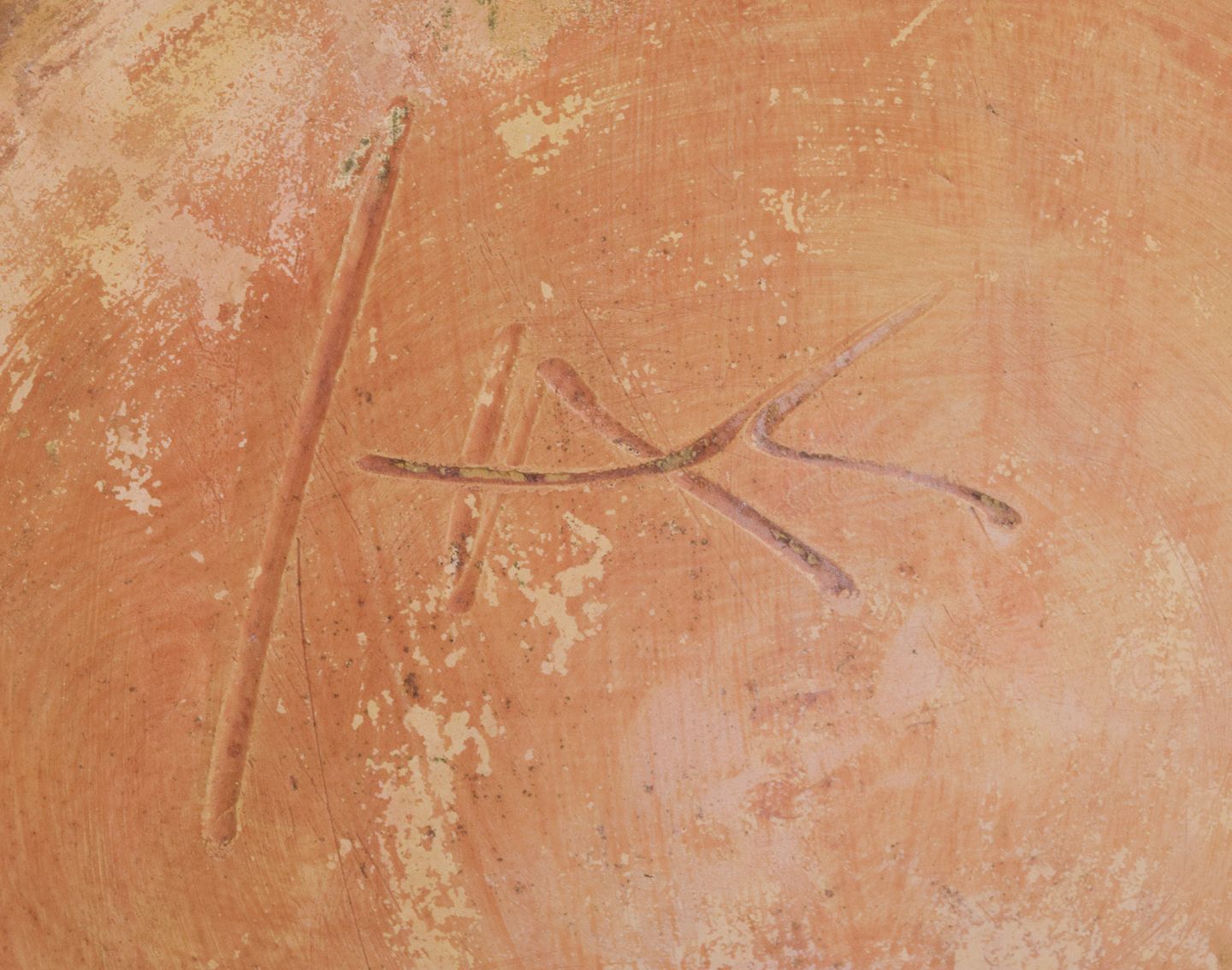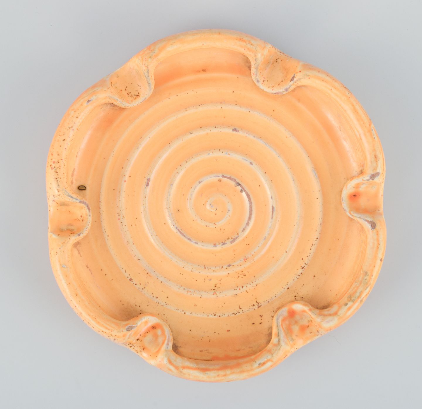 Kähler keramikfad i uranglasur. Spiralformet motiv.