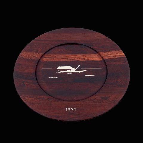 Robert Dalgas Lassen. Dækketallerken i palisander med intarsia i sterling sølv - 1971.