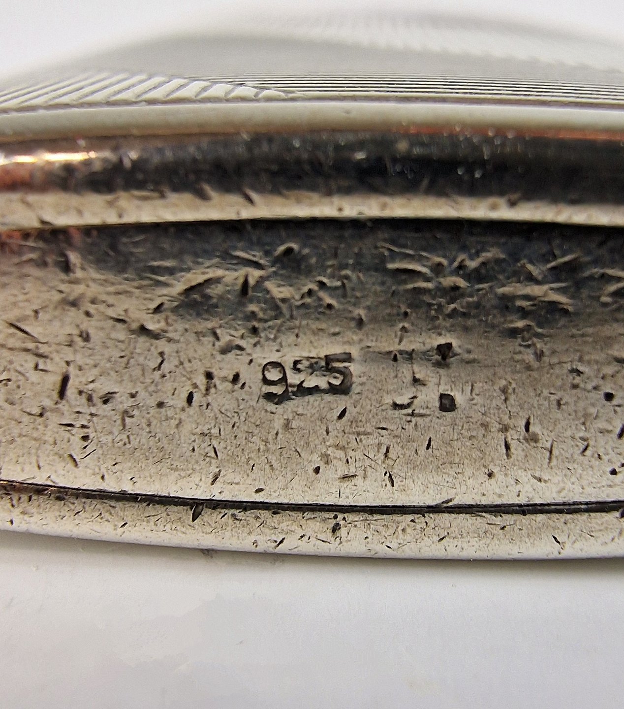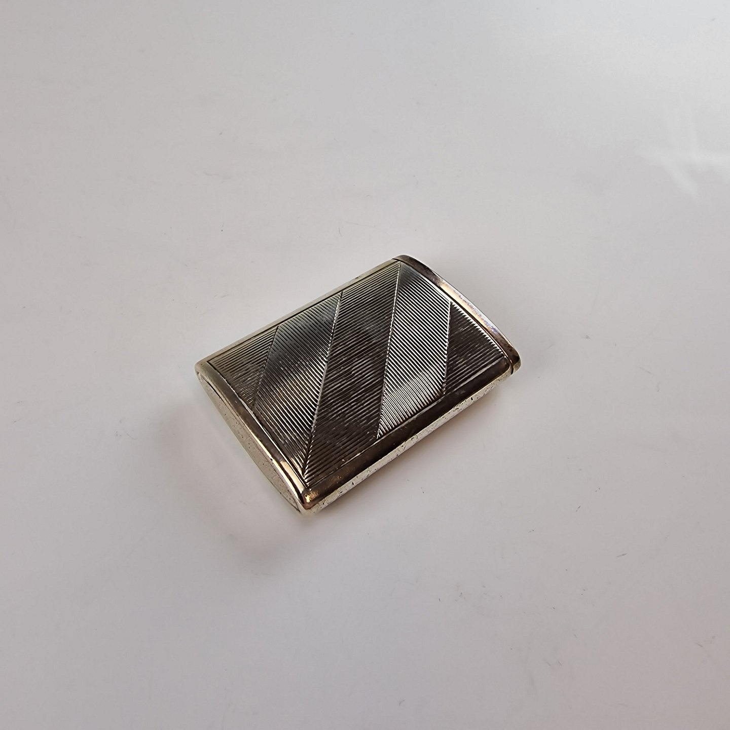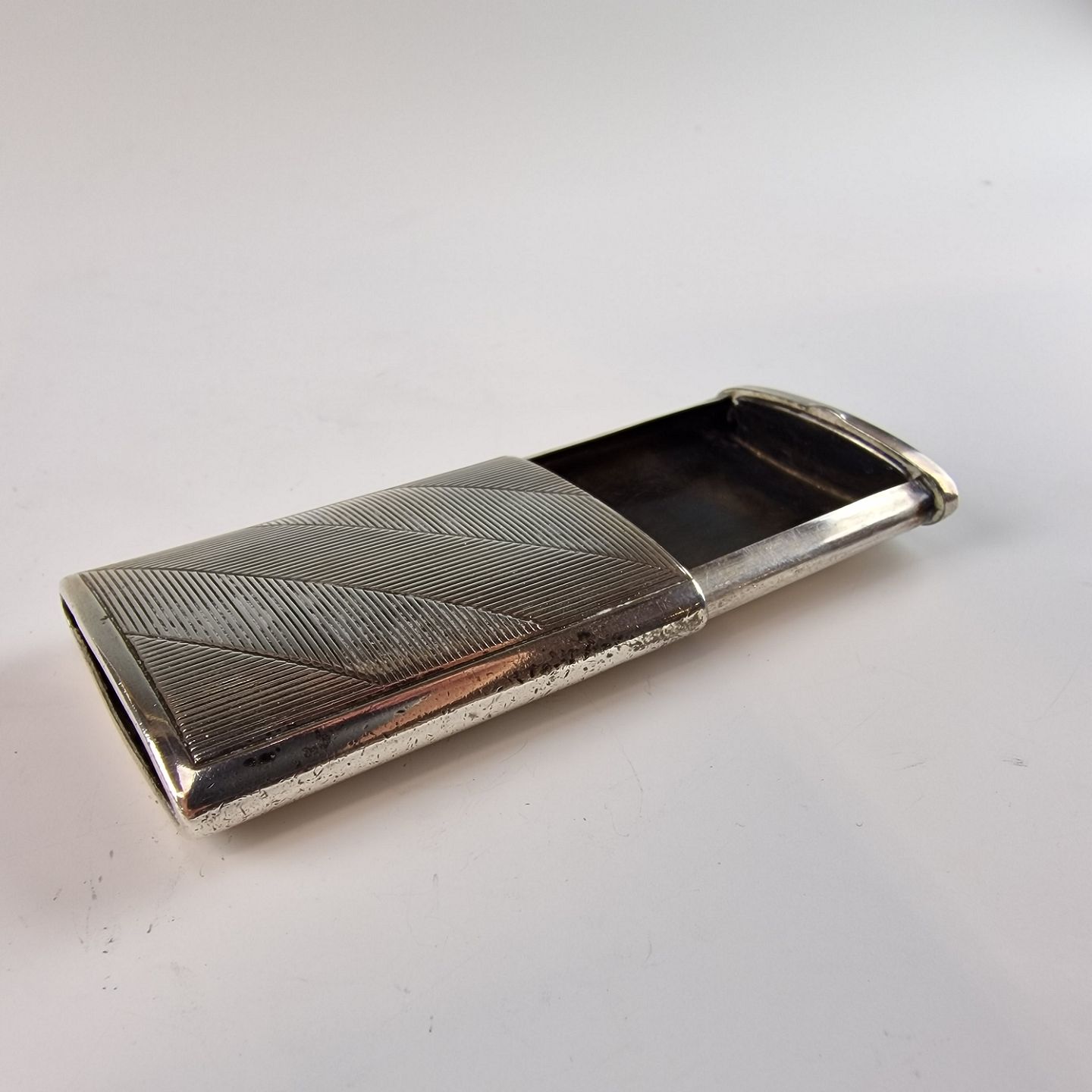 Tændstikæske i sølv med diagonalt mønster. Indeholder tre tændstikker