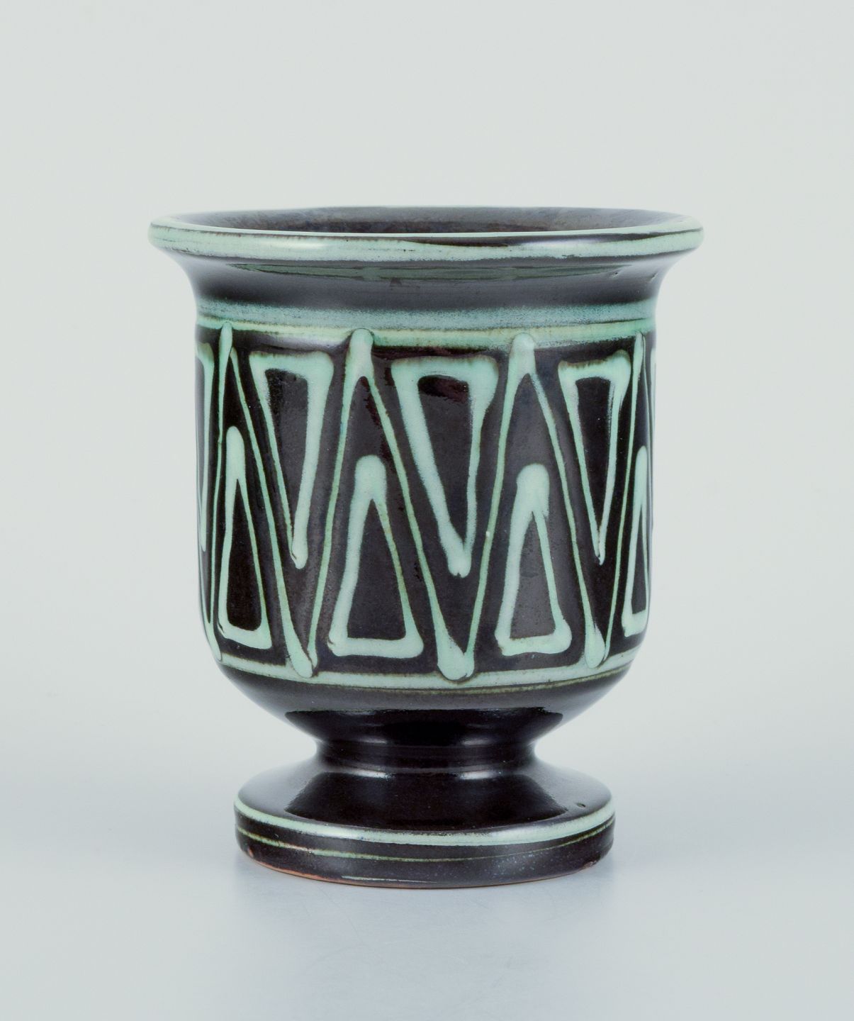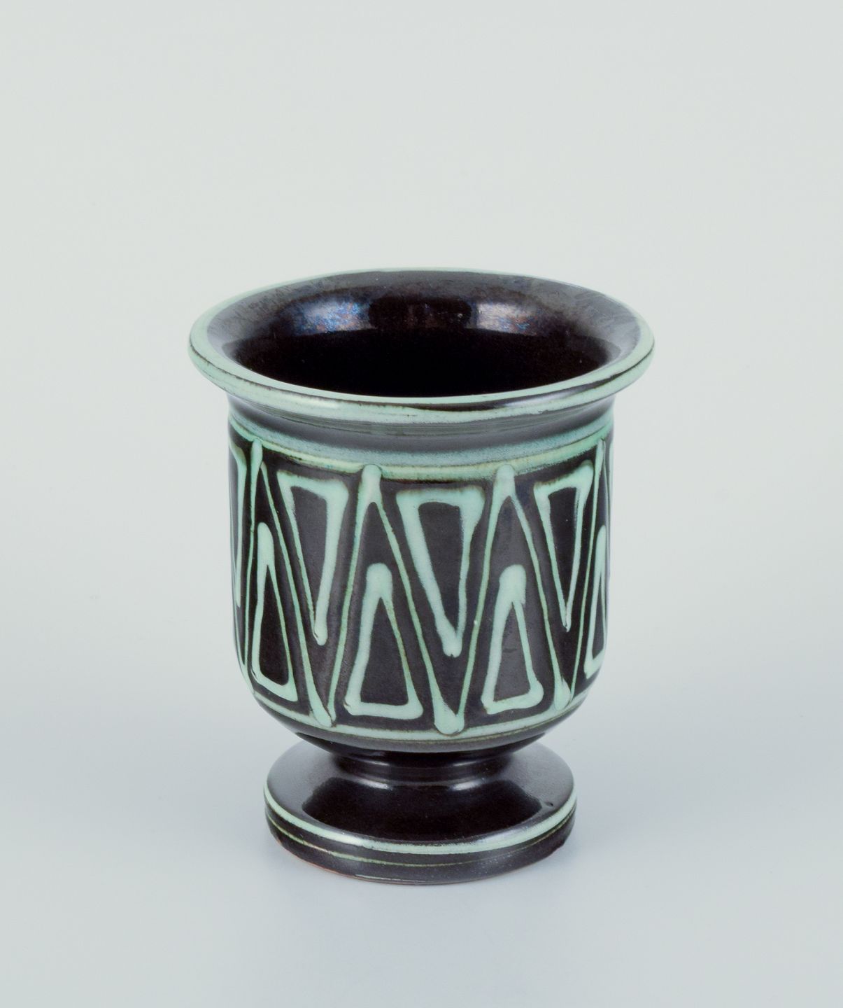 Kähler, Denmark. Small vase and small bowl with a handle shaped like a bird. Handmade ceramic. Vase with a geometric pattern.
