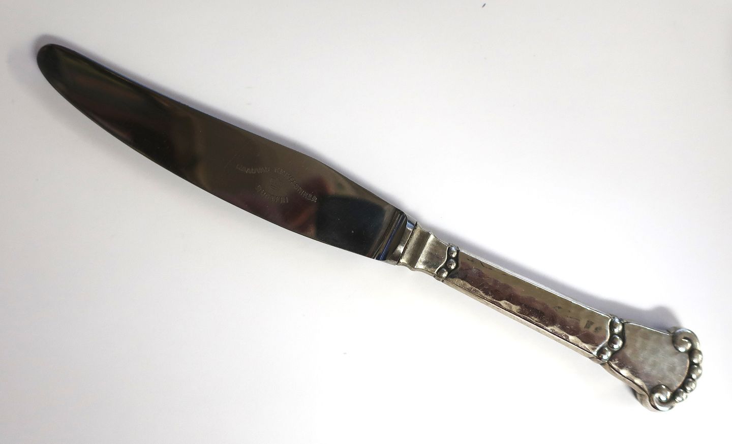 Kugle, Ernst Assens. Sølvbestik (830). Frokostkniv. Længde 20 cm