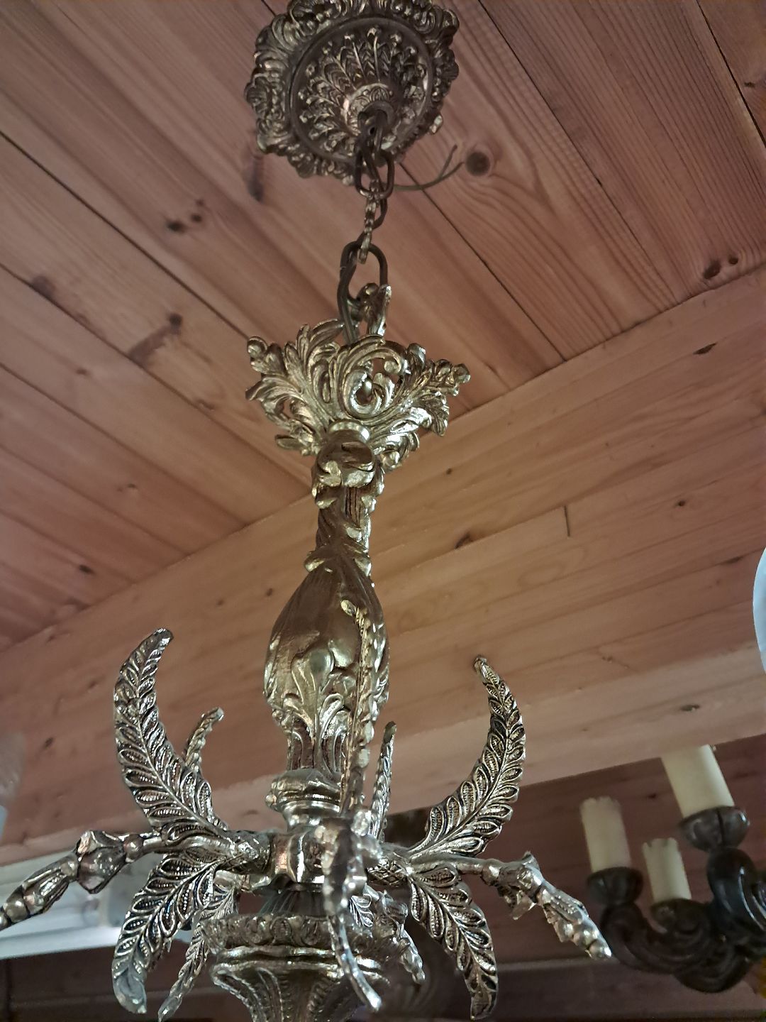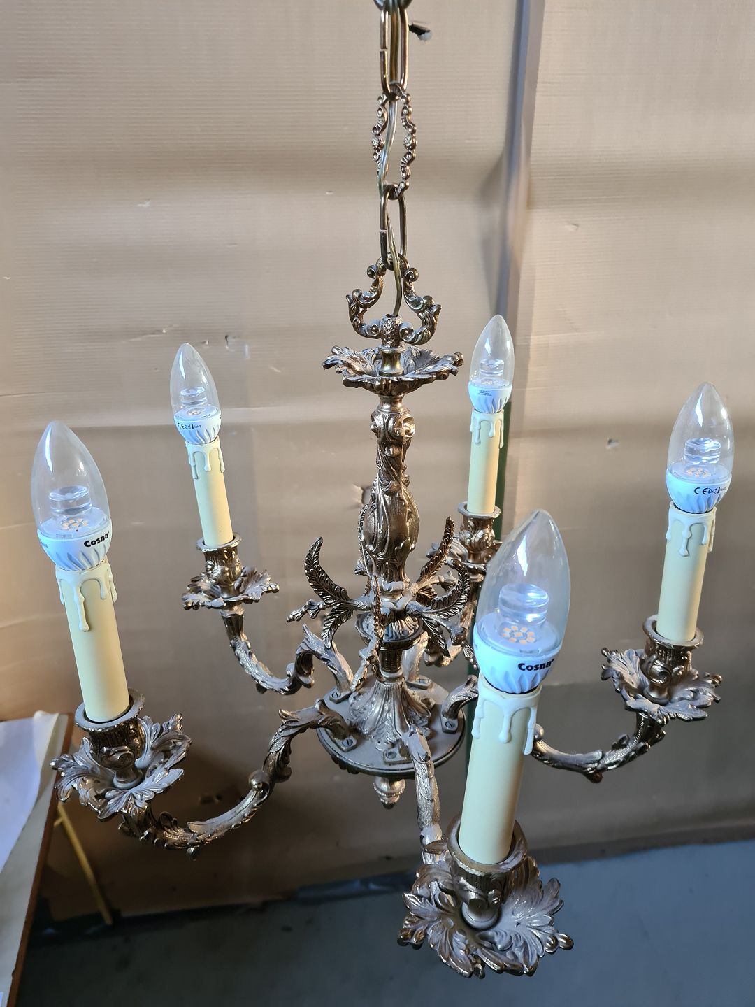 5-Armet lysekrone i metal, fra 1980erne.
