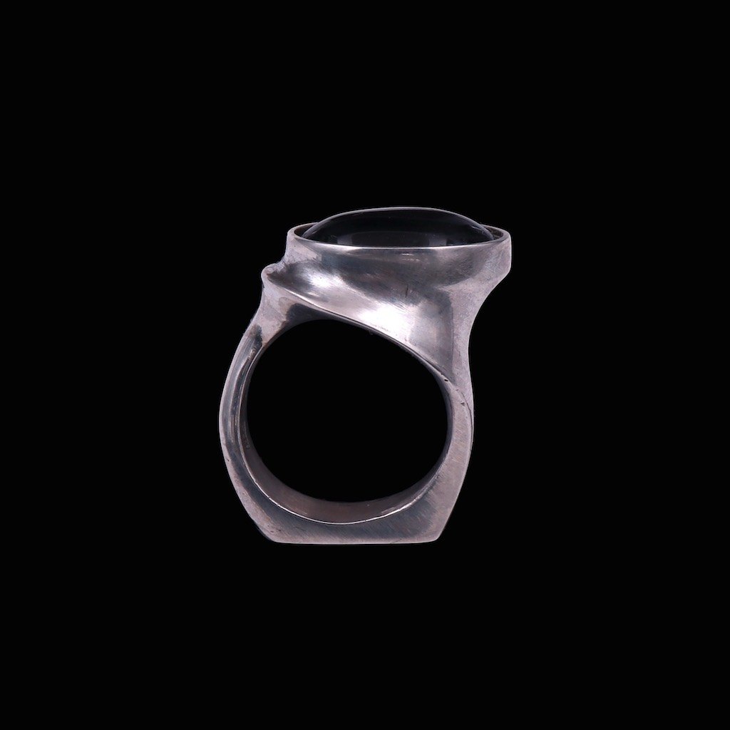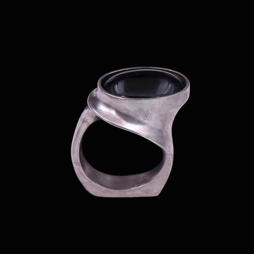 Hans Hansen. Ring i sterling sølv med onyx #10280 - Allan Scharff.