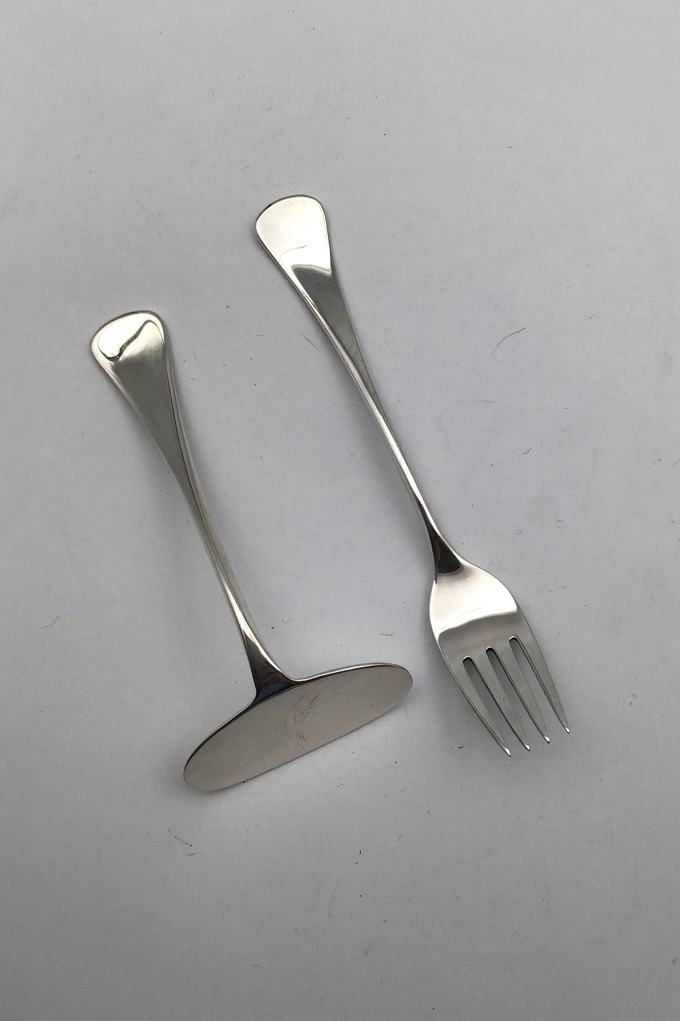 W&S Sørensen Sterling Sølv Patricia Barnebestik (Miniature) Måler Gaffel 11.3 cm (4.44 inch) Skubber 8.8 cm (3.46 inch)