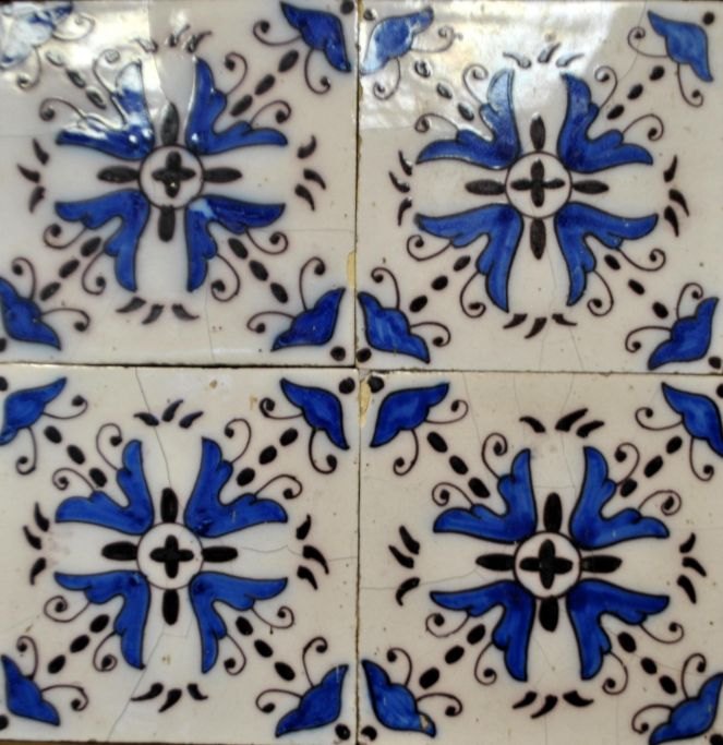 Firpas med antikke fliser, 19. årh. Holland. Polykrome. 26 x 26 cm.
