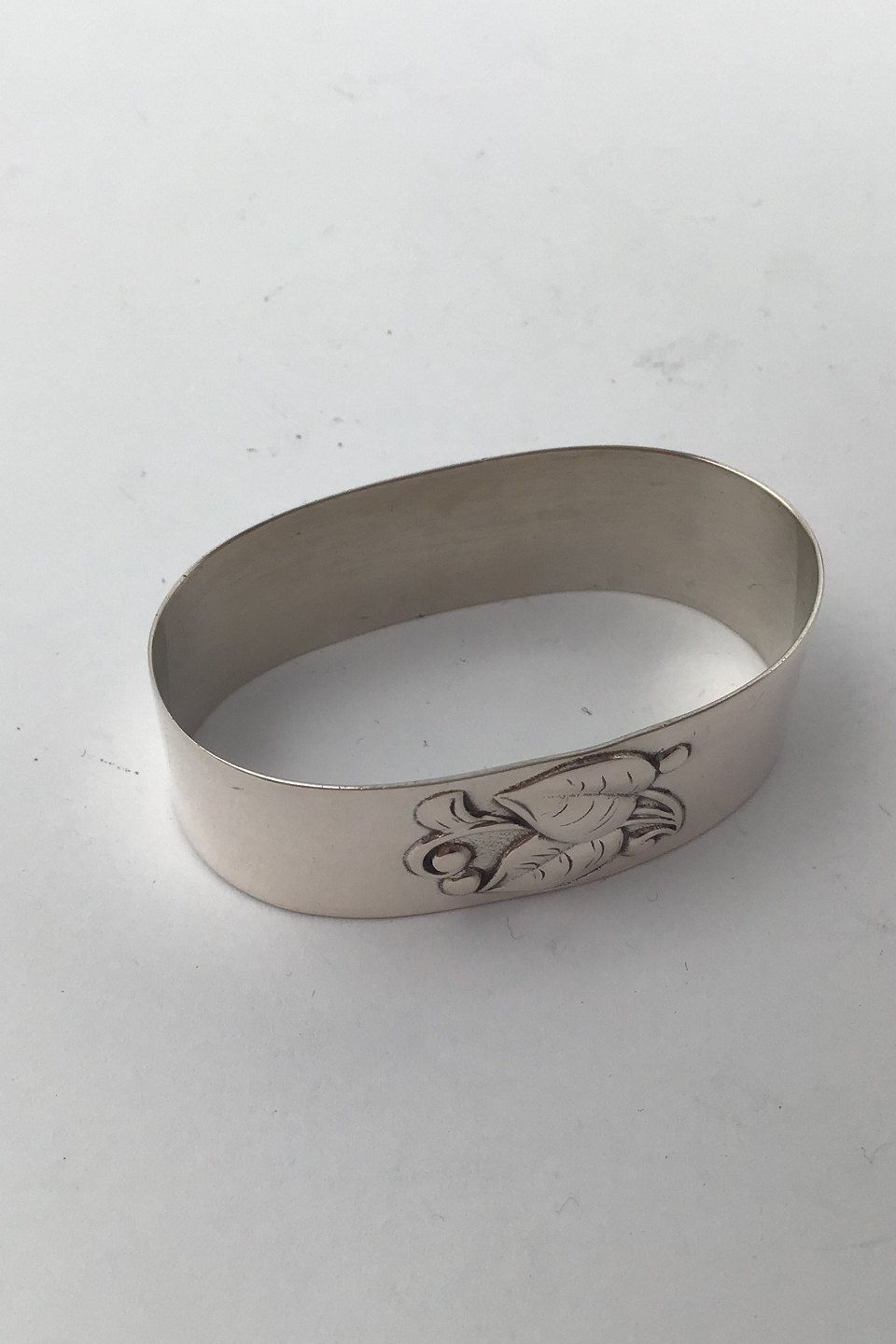 Dansk Sølv Servietring (Bladmotiv) Måler H 1.5 cm (0.59 inch) 3 cm x 4.8 cm (1.18 inch x 1.88 inch) Vægt 10.9 gr (0.38 oz)