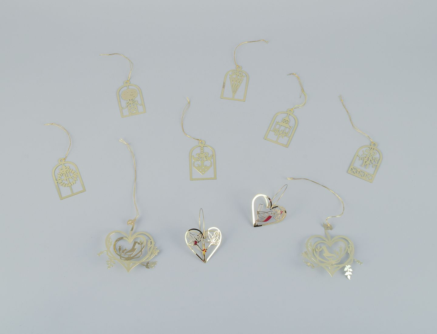 Royal Copenhagen ”Royal Christmas”. Ti juledekorationer i messing til ophæng på juletræ og i vinduet.