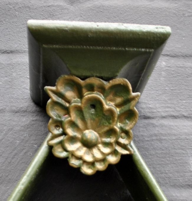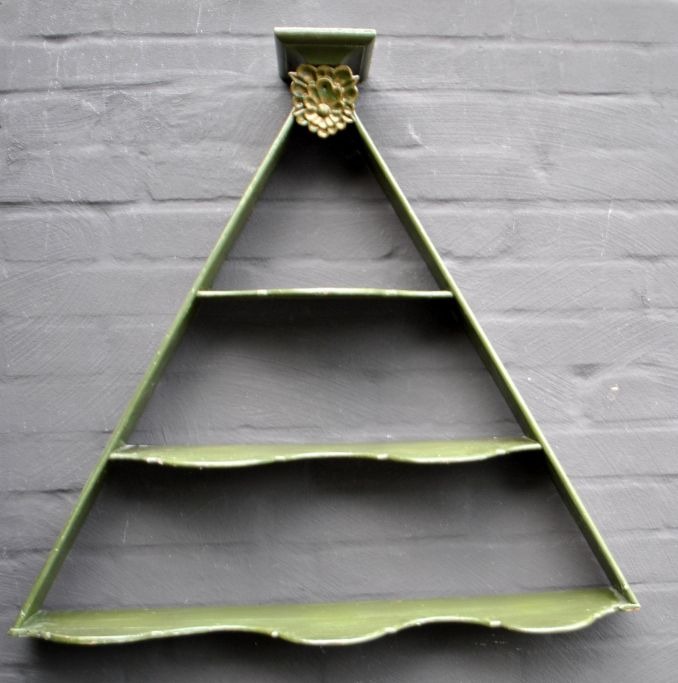 Southern Jutland painted pine "Amagerhylde", 19th century Denmark. With carved flower decoration on top. Curved shelves. H: 67 cm. W.: 75 cm. D.: 14.5 cm.