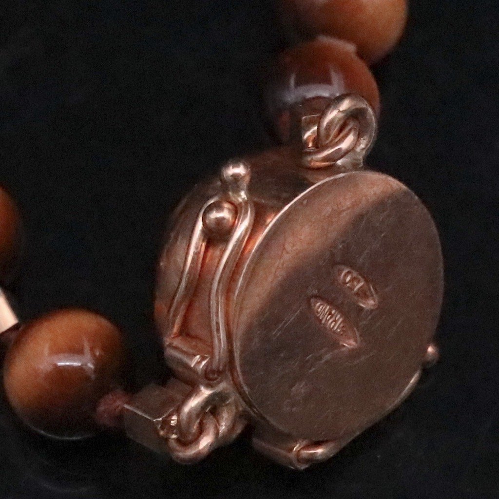 Karen Strand. Tigerøje perlekæde med 18k guld.