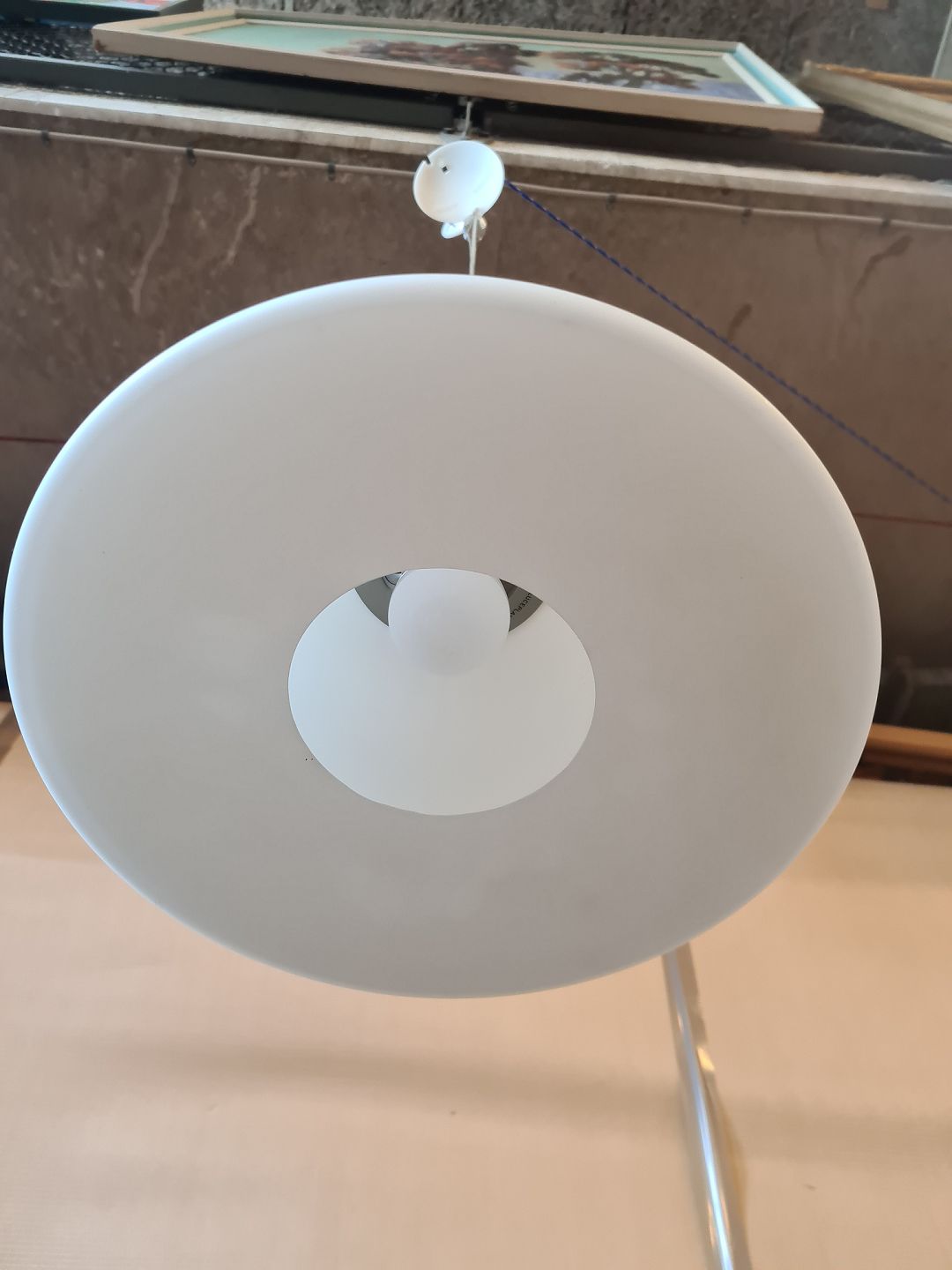 Loftlampe i glas og stål, fra 2000erne.