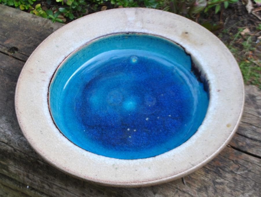 Stort H. A. Kähler fad, 20. årh. Design: Nils Kähler. Næstved. Danmark. Turkis glasur i midten. Stemplet. H.: 6 cm. Dia.: 34 cm.
