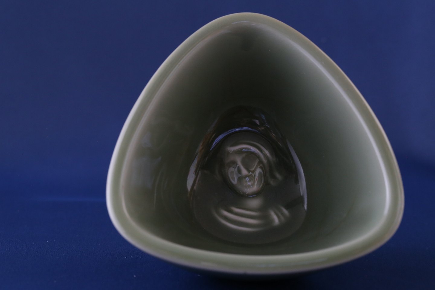 Flot Jais skål fra Royal Copenhagen, med unikt mønster i bunden af skålen. Den flotte form giver denne skål et specielt look, der både er nostalgisk og futuristisk på samme tid - ja, nærmest tidsløs. Skålen kan bruges til pynt eller til snacks ved middagsbordet, ja mulighederne er mange. Skålen har lettere krakeleringer, men disse ses kun svagt.