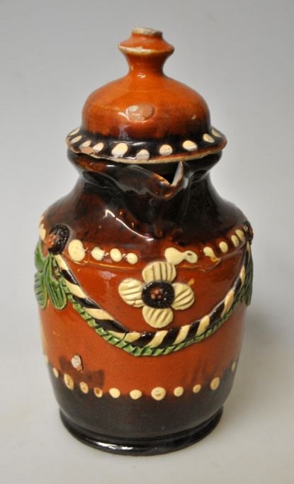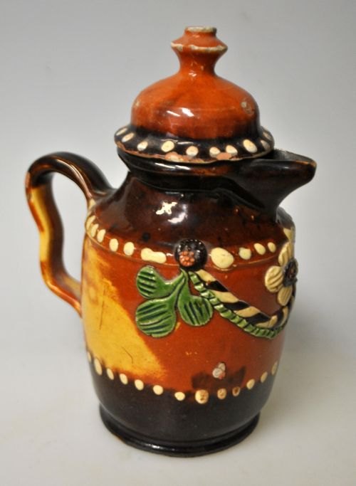 Lille keramik kaffekande, 19. årh. Schlesvig - Holsten. Polykrom dekoreret med ranker og blomster. Højde.: 15 cm.