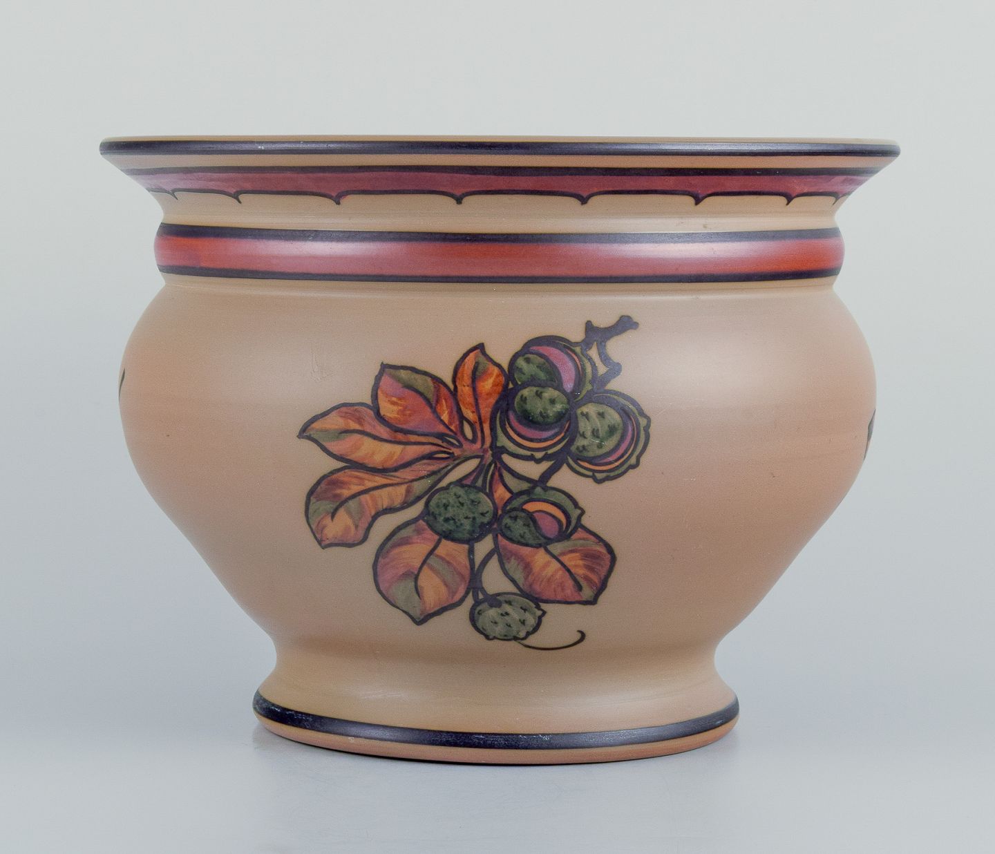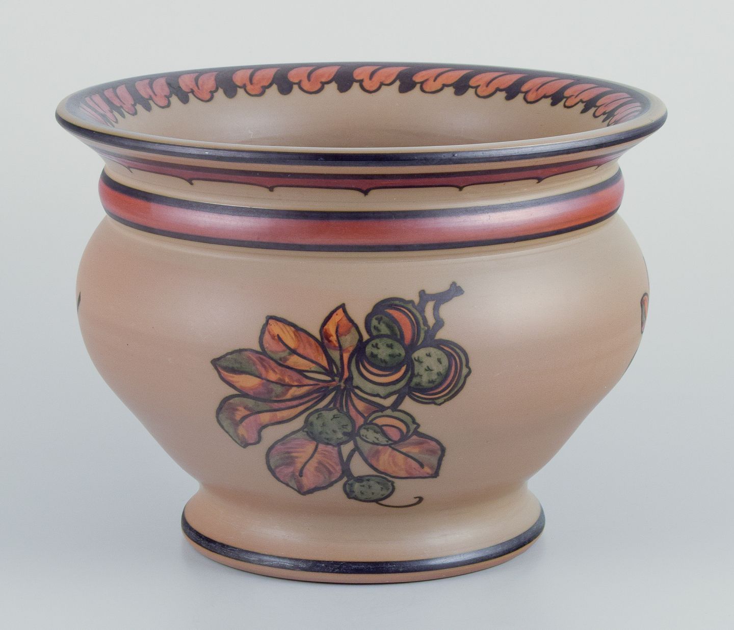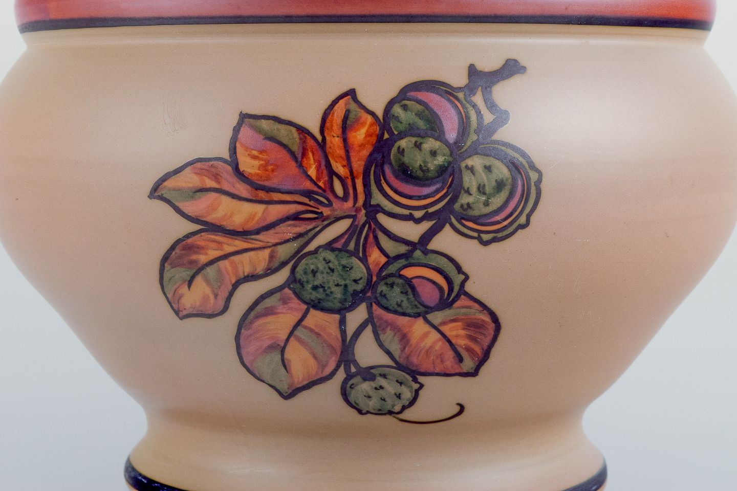 Hjorth, Bornholm. Stor keramikkrukke. Håndmalet med blomstermotiver.