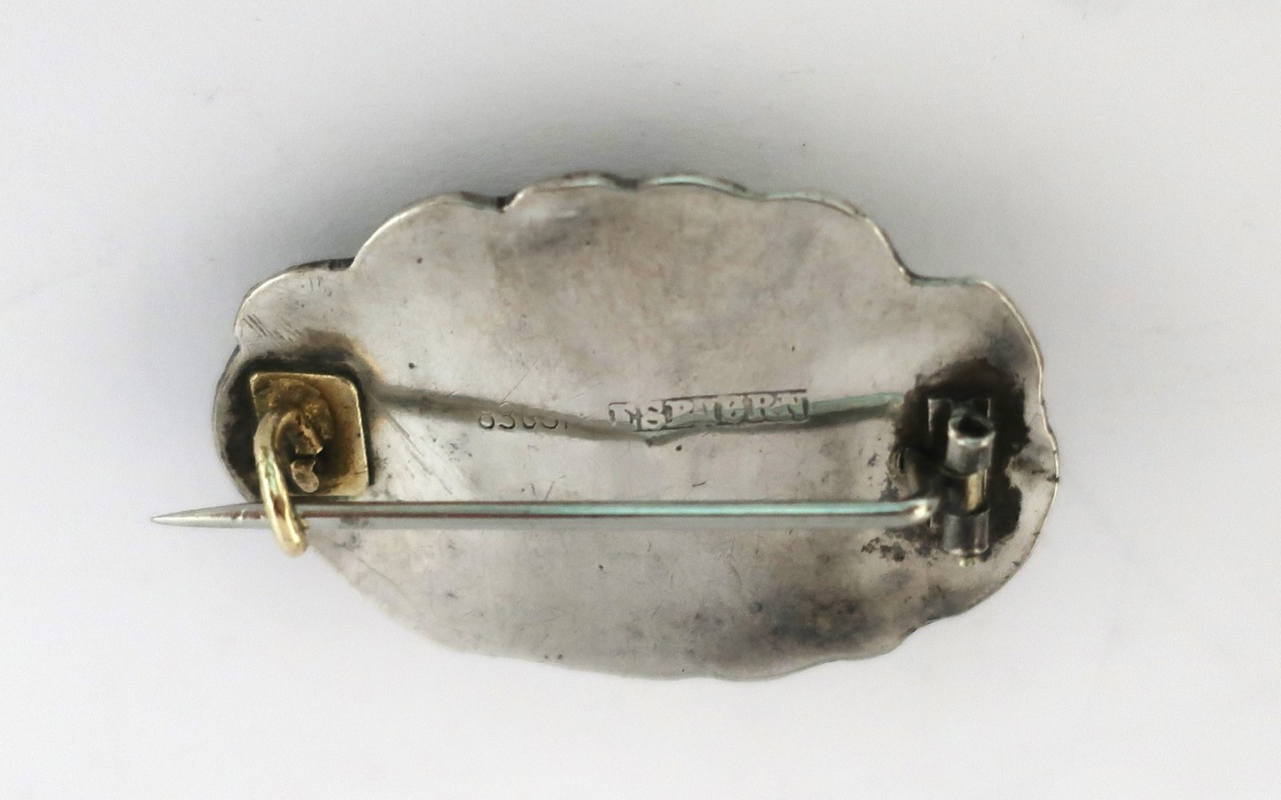 Esbjørn. Sølv broche med grøn sten (830). Længde 37 mm