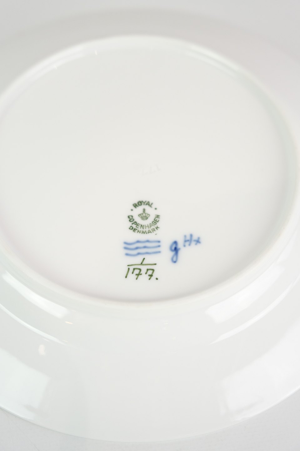 Denne tallerken er en del af den ikoniske Musselmalet-serie fra Royal Copenhagen, som er kendt for sit karakteristiske blå mønster, der pryder tallerkenens overflade. Dekorationsnummeret 1/177 er en reference til det unikke mønster og design, der er blevet omhyggeligt udvalgt til denne tallerken.