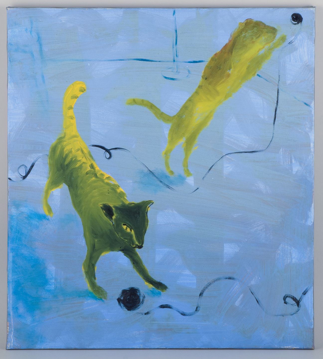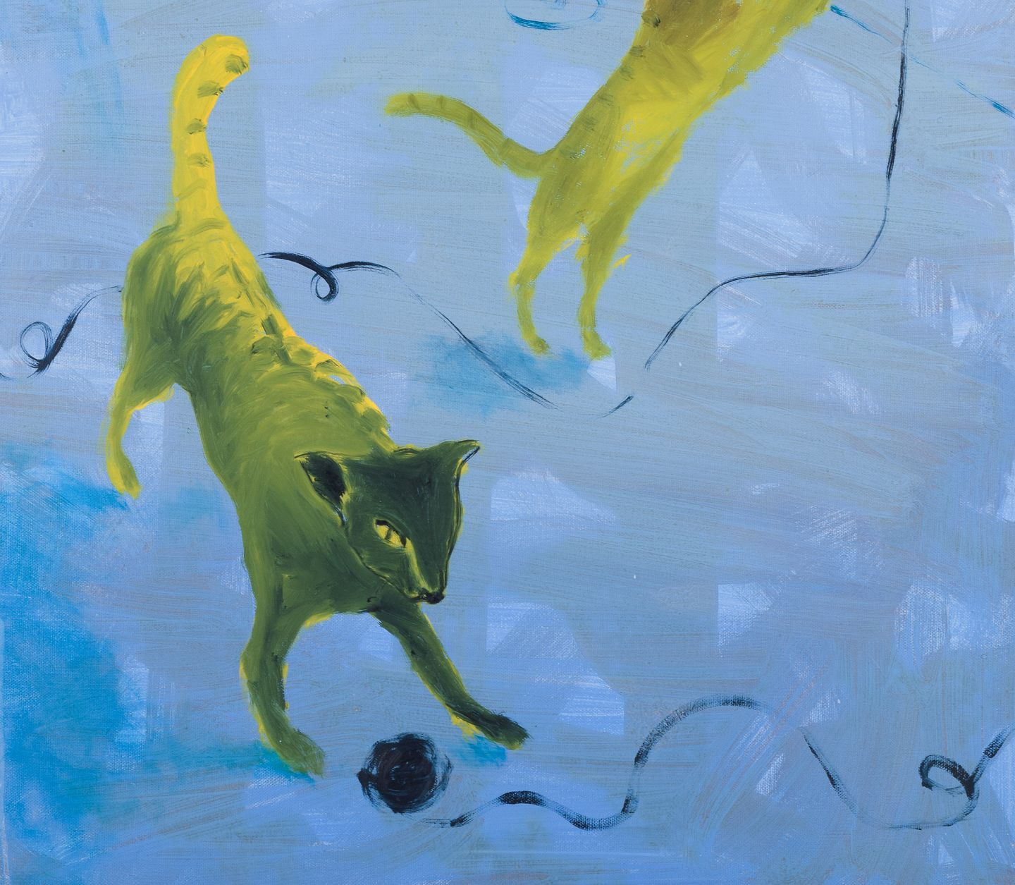 Katte i leg med garnnøgler. Abstrakt komposition.