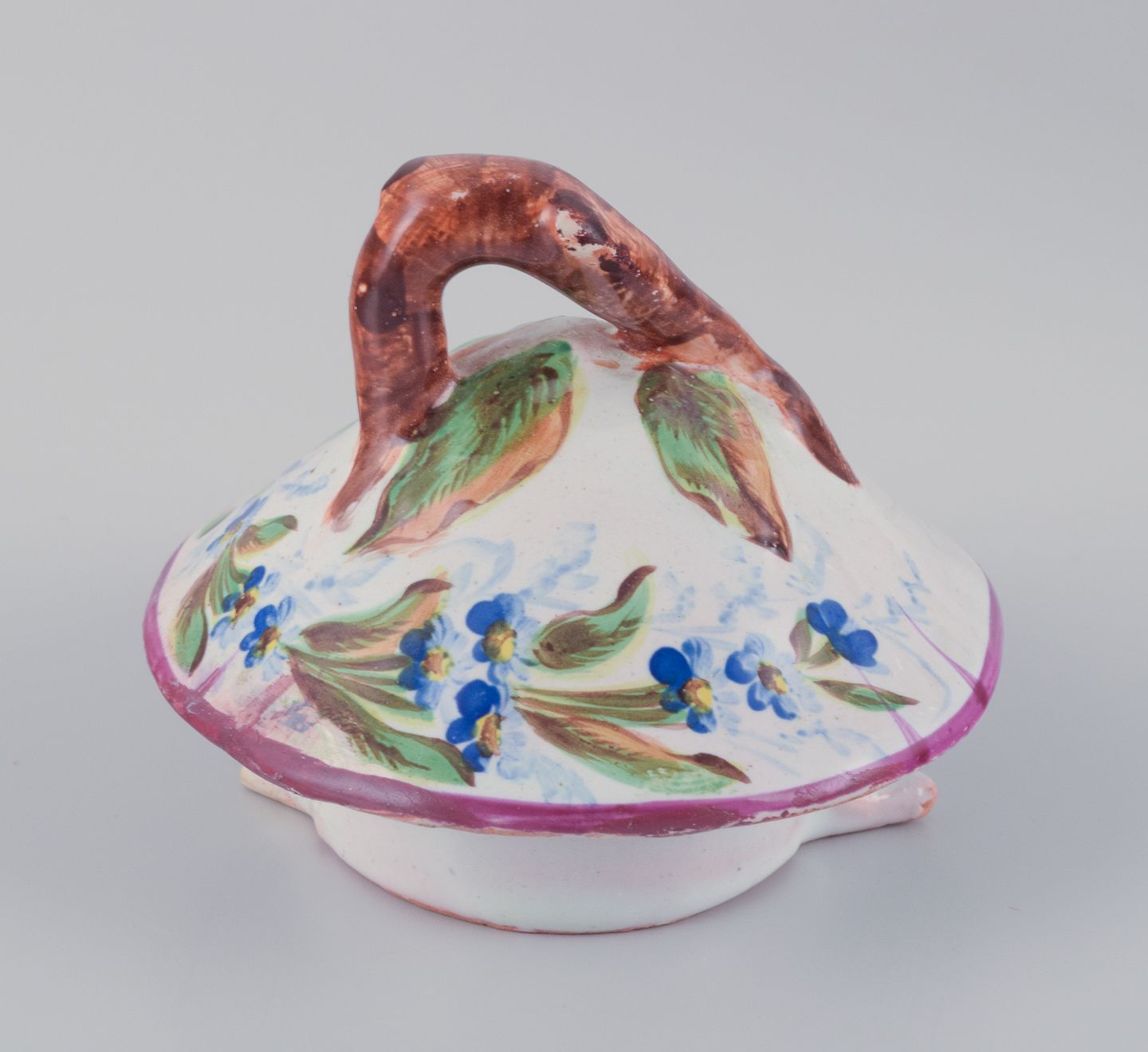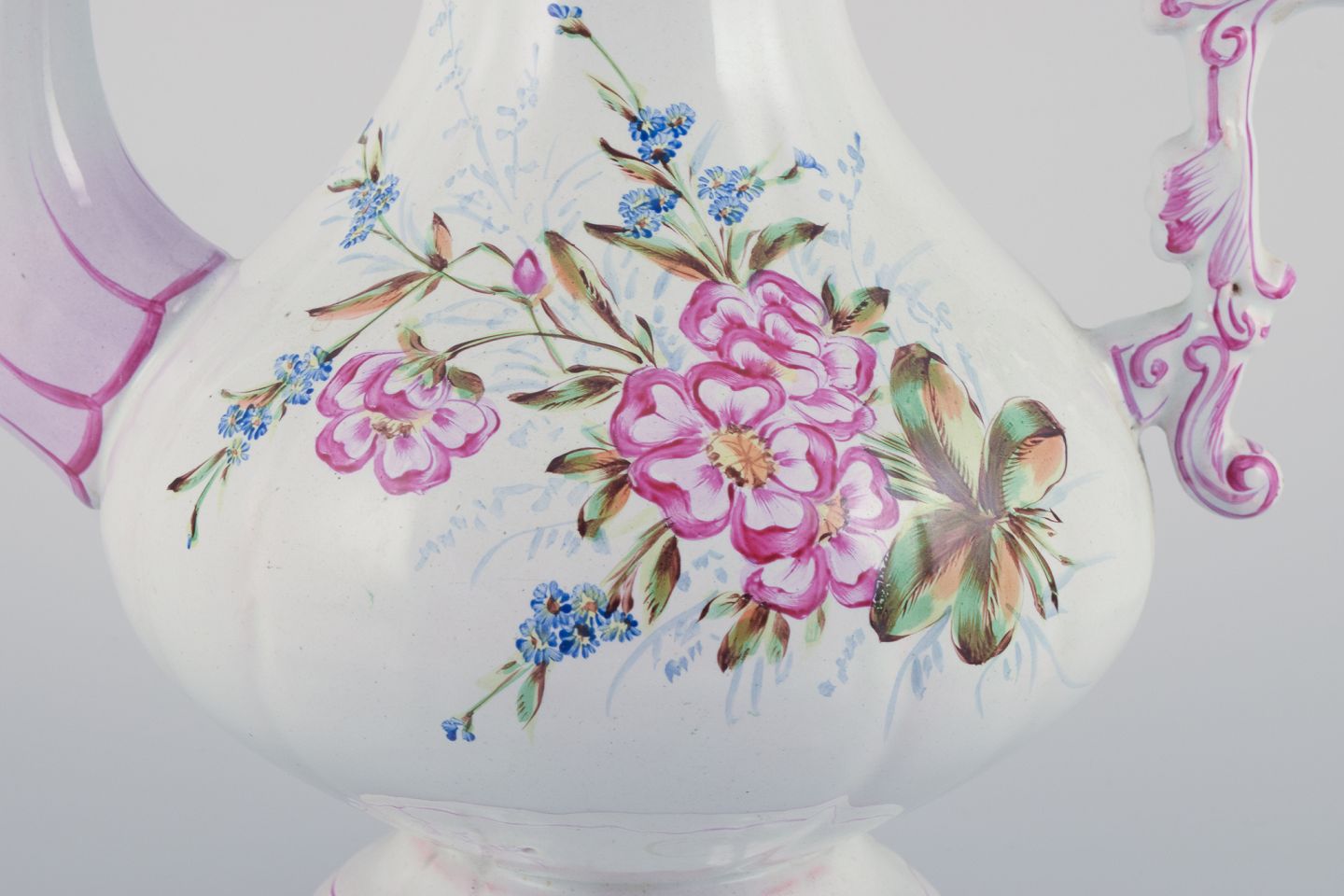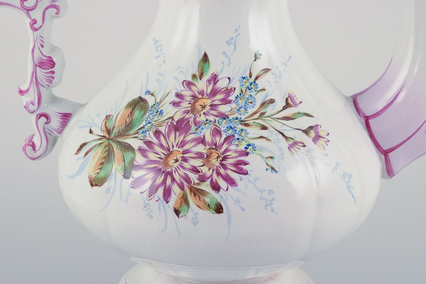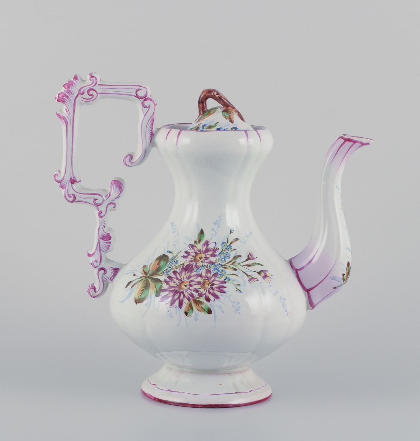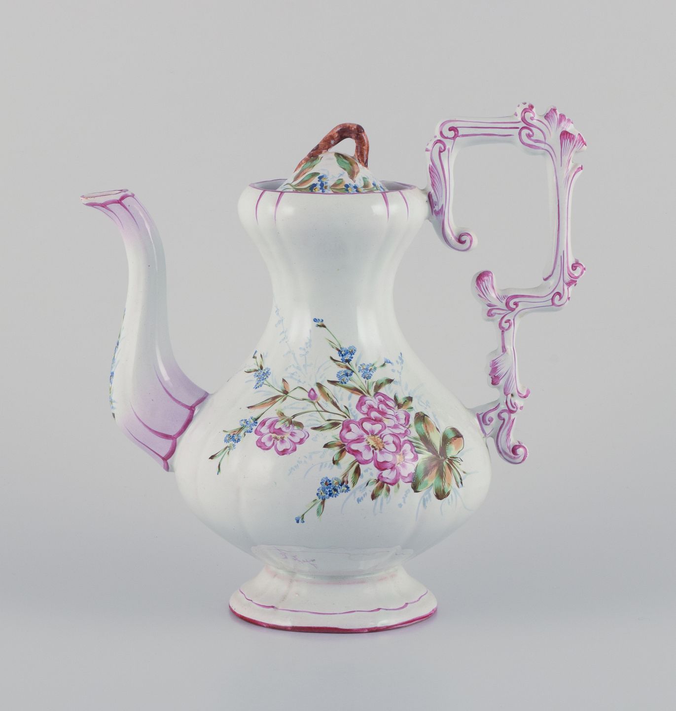 Emile Gallé (stil). Stor kaffekande i fajance med motiver af blomster og insekter.