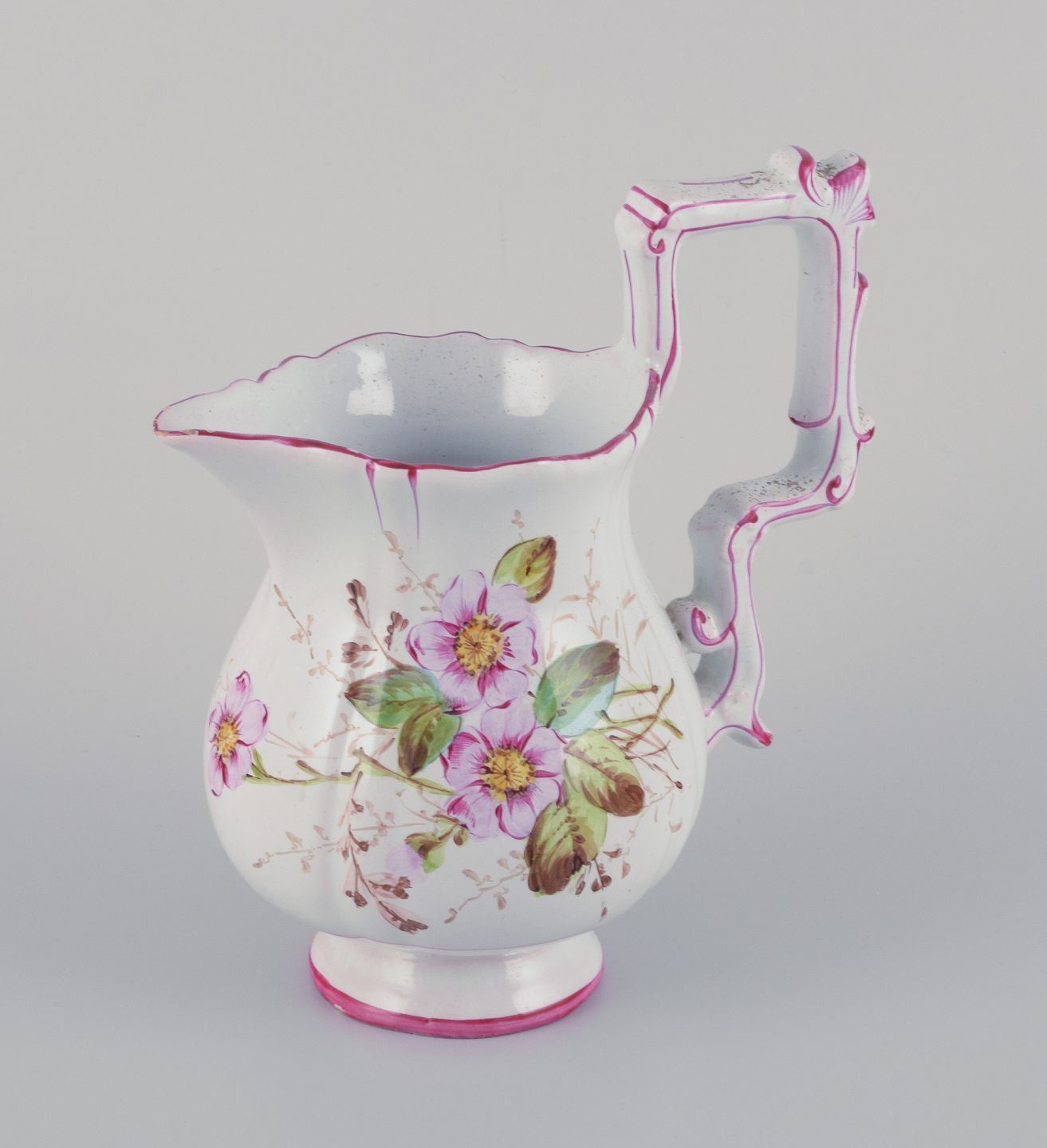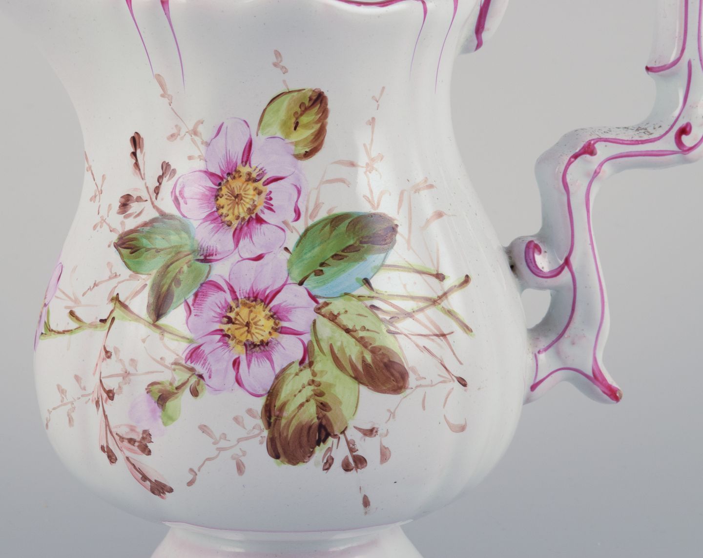 Emile Gallé (stil). Kande i fajance med motiver af blomster og insekter.
