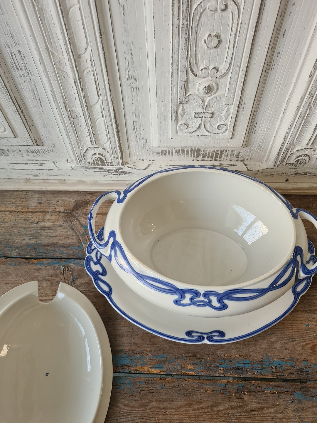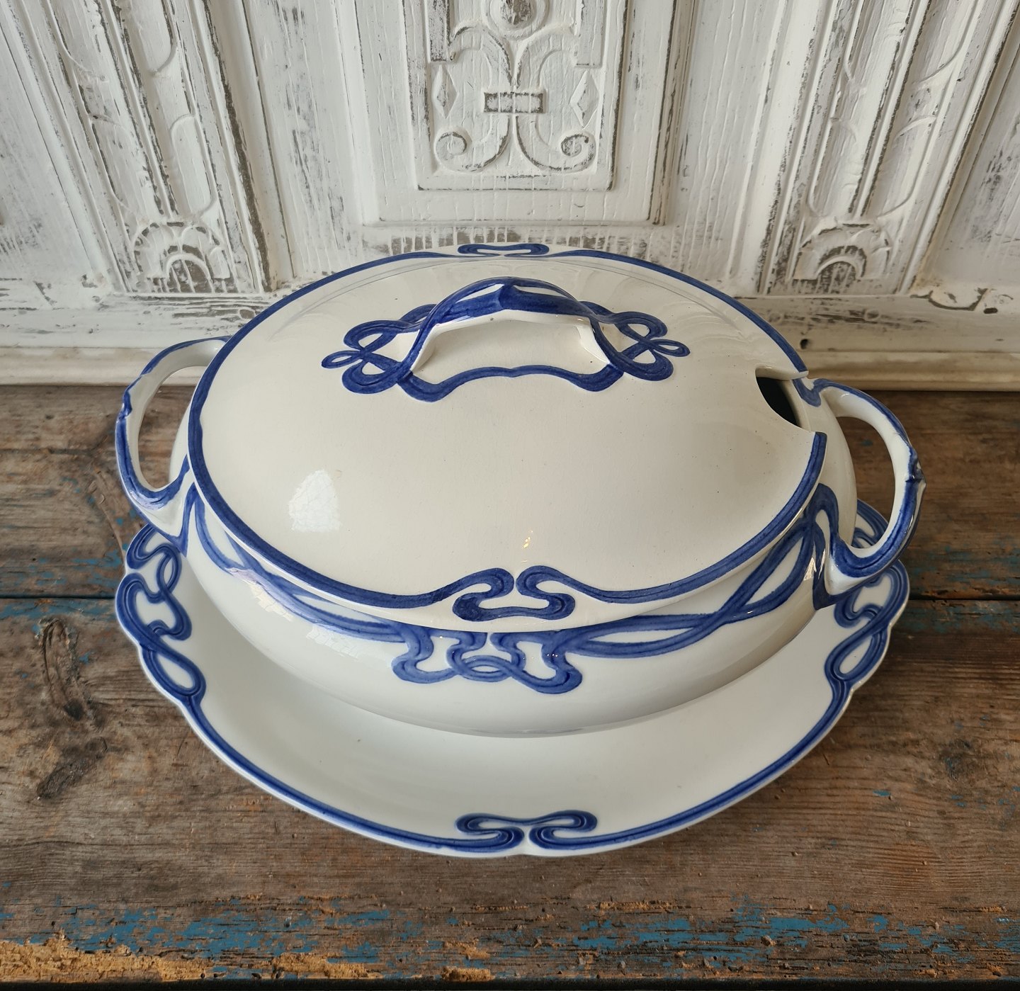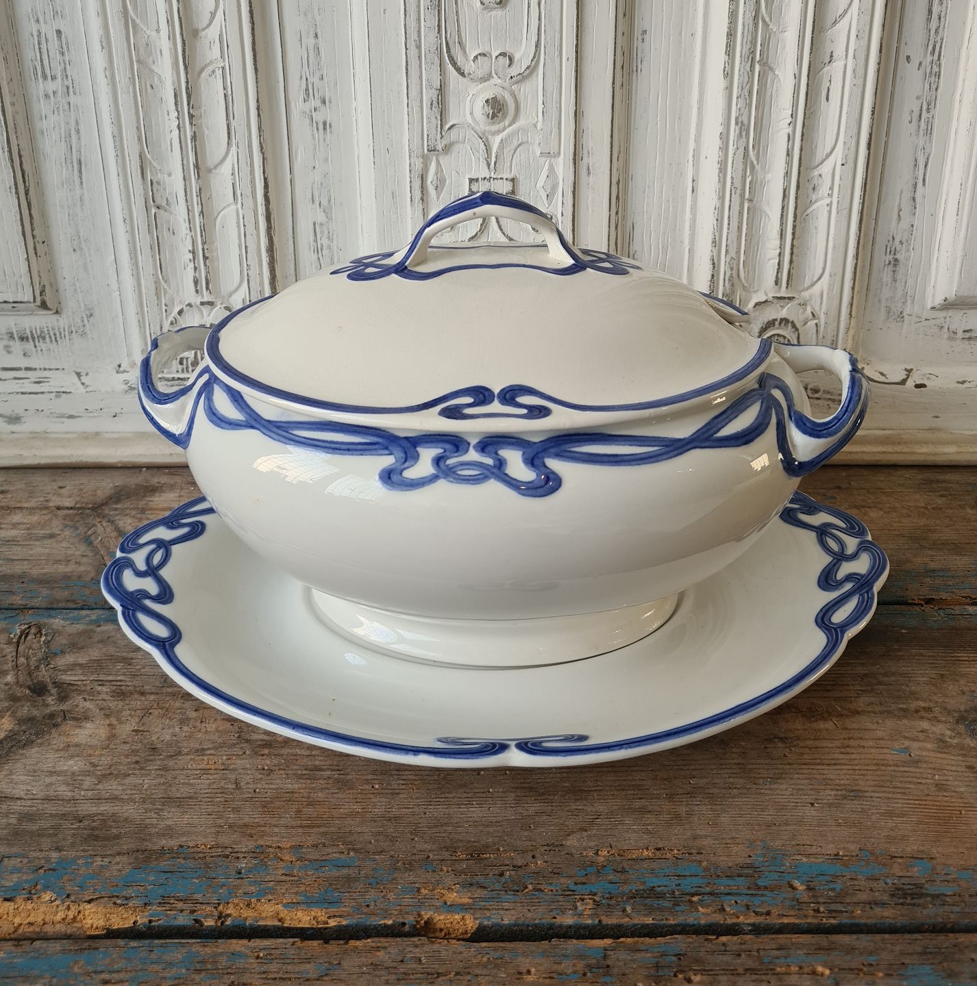 Villeroy & Boch Blå Olga stor terrin med underfad.