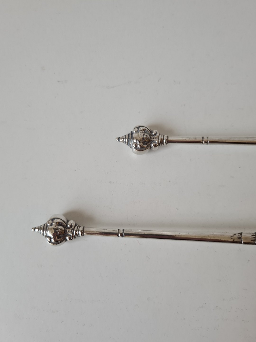 Par danske serveringsskeer i sølv fra 1883 af Amsel Moses Halberstadt født 1820 - Borgerskab 1846 - Død 1901