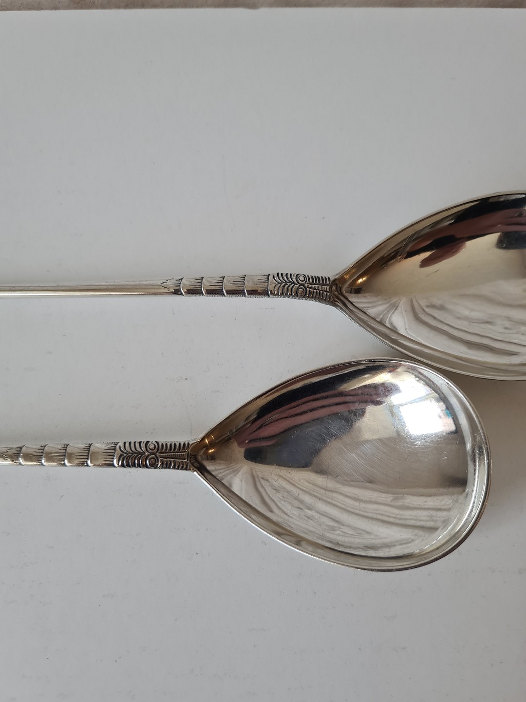 Par danske serveringsskeer i sølv fra 1883 af Amsel Moses Halberstadt