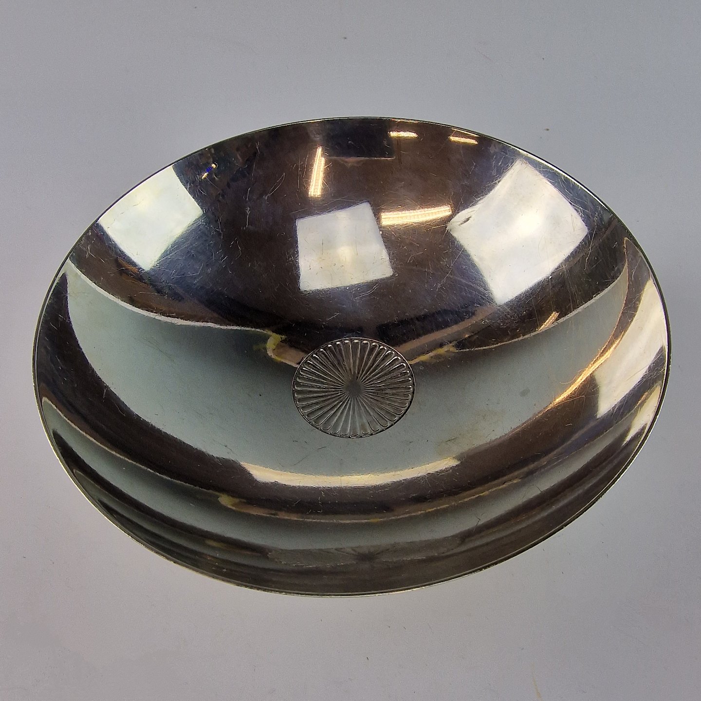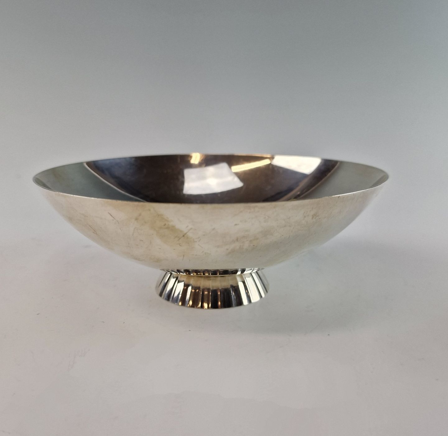 Blank skål af sterling sølv med kanelleret fodstykke. No 823