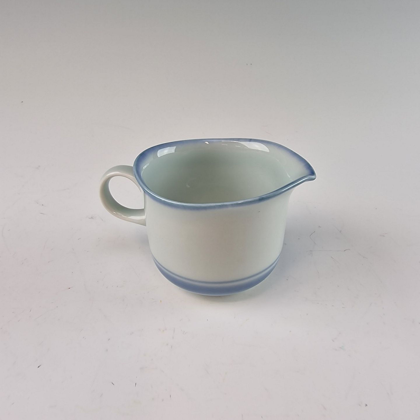 Stellets runde former er dækket med en silkeblød glasur og håndmalet med er lys almueblå farve lagt under glasuren. Stellet er ovnfast
