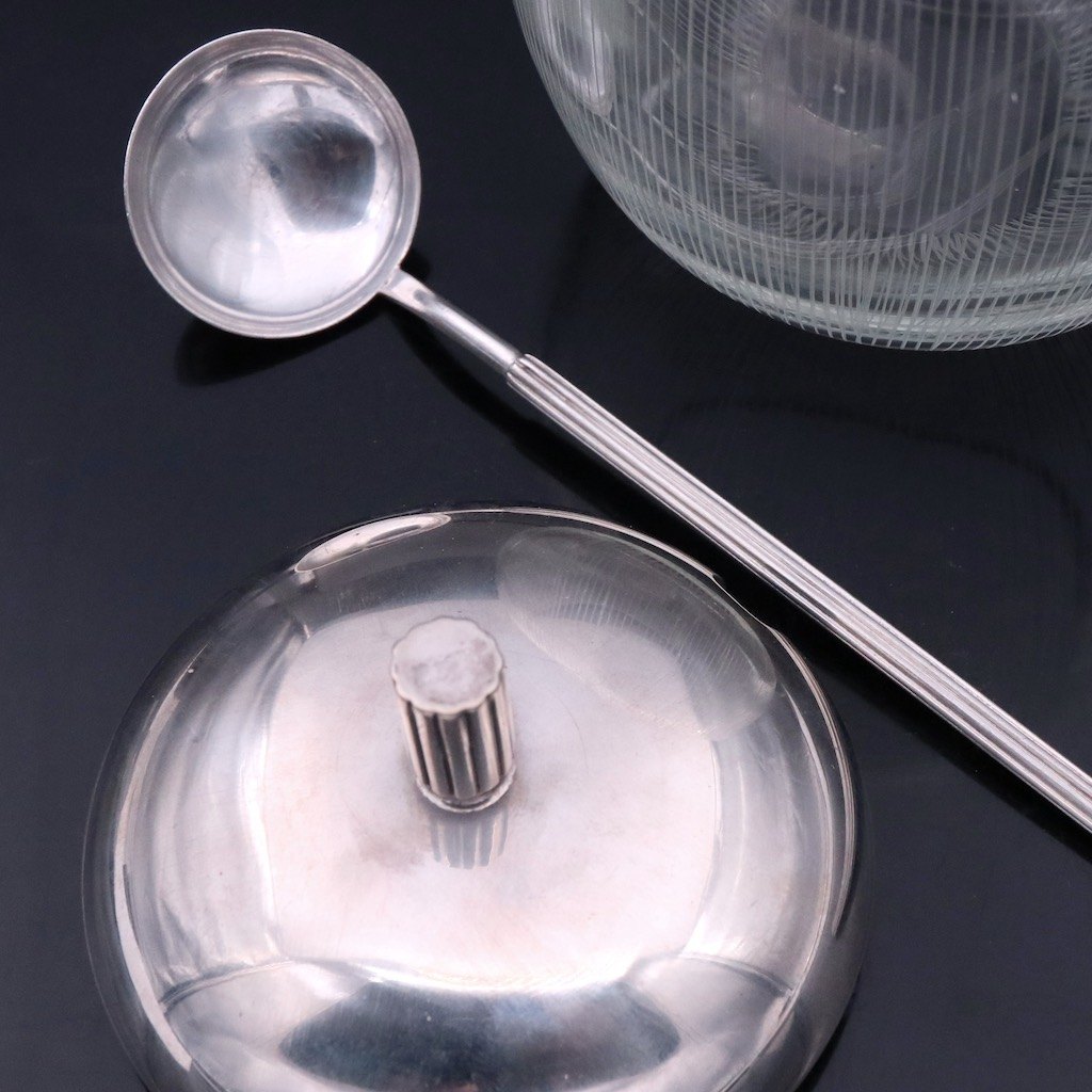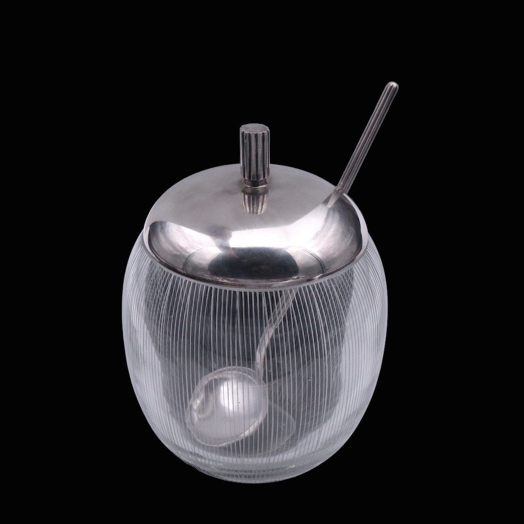 E. Dragsted. Krukke i glas med låg og ske i sølv.