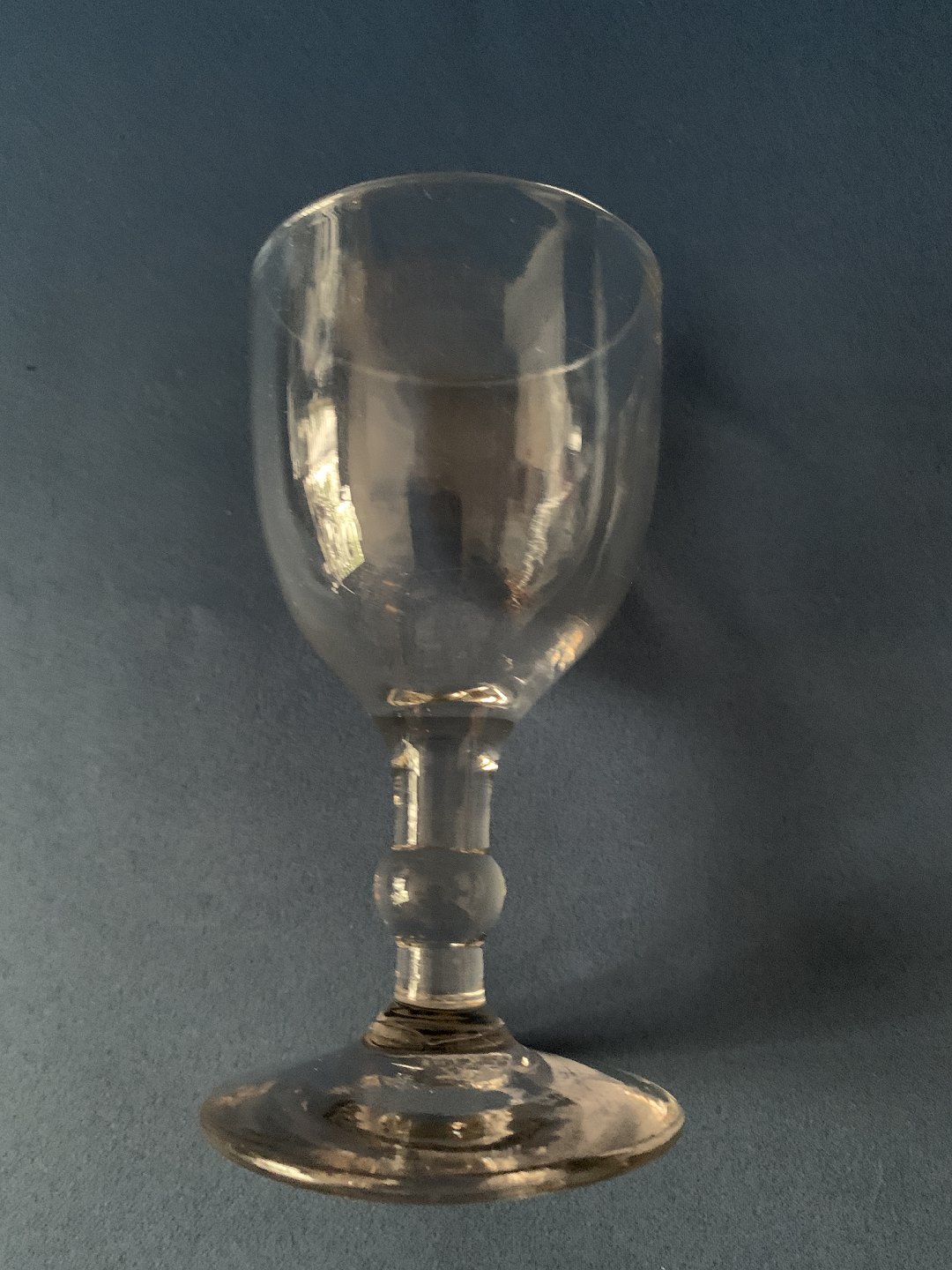 Flotte portvinsglas med stilk og knap, i flot stilet design. Disse flotte glas pynter kaffebordet, og indbyder til en skål. Glasset er produceret cirka 1900-1920, og er 11,5 centimer højt.