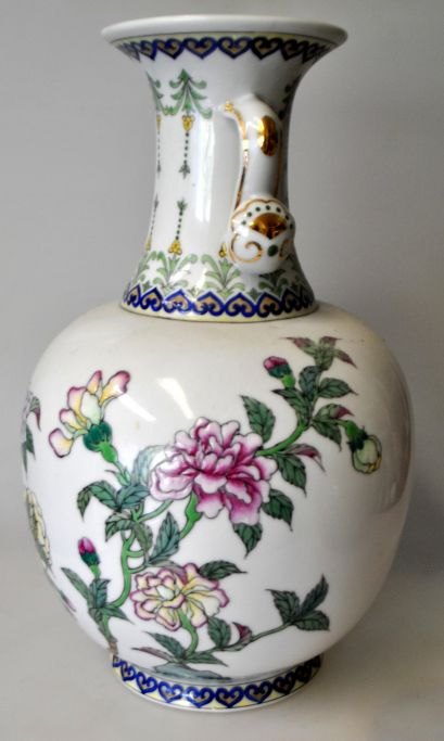 Chinese hand-painted porcelain vase, 20th century. Polychrome decorated with flowers and gilding. Stamped. H.: 30 cm.