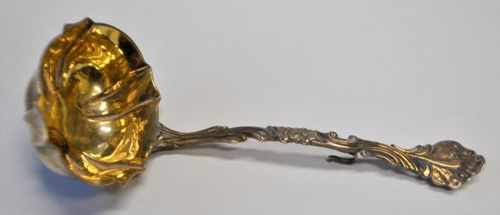 Sønderjysk sølv barok ske, Philip Eckel Jansen (1722 - 1800) Sønderborg, Danmark. Stemplet. Indvendig lyeforgyldt. Med indgravering: Anna D. Petersen. L: 17,5 cm.