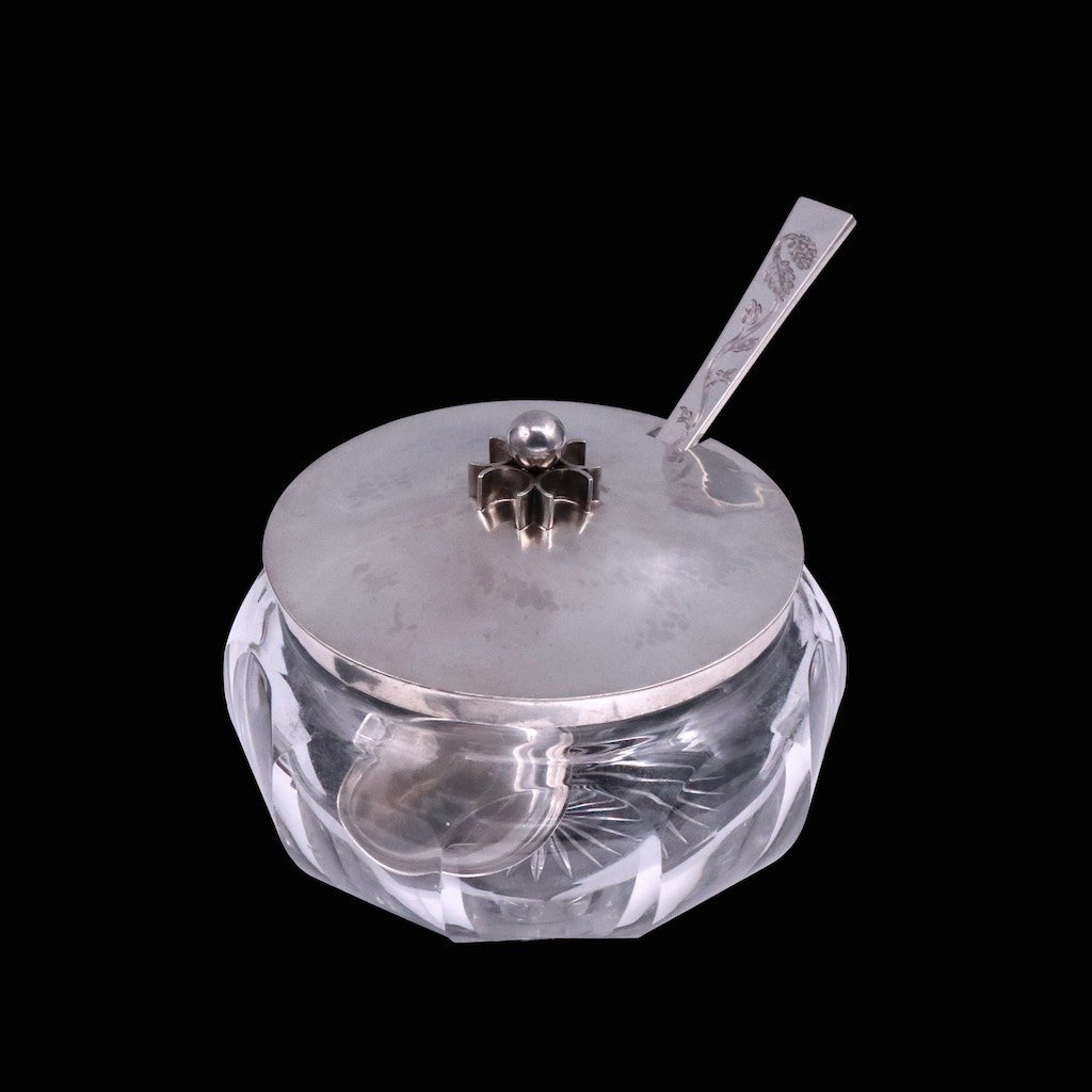 Hans Hansen. Glass Jar with Sterling Silver Lid & Spoon - 1934.