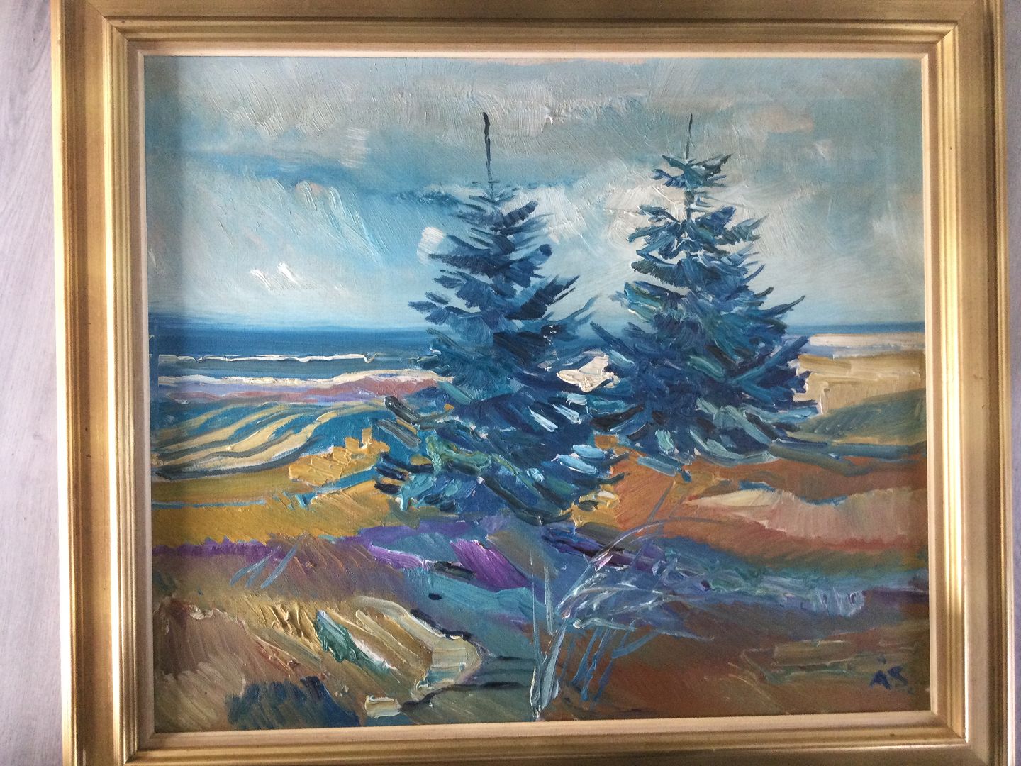 Maleri af Aage Strand - Graner i klitlandskab.