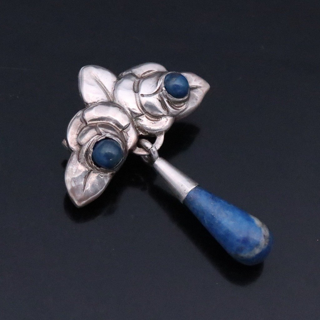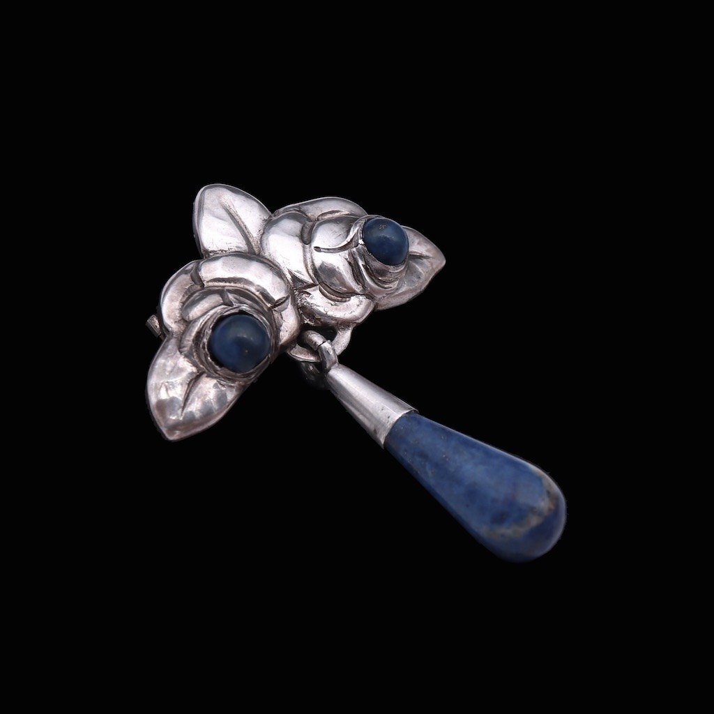 Evald Nielsen 1879 - 1958. Skønvirke Broche i sølv med Lapis lazuli.