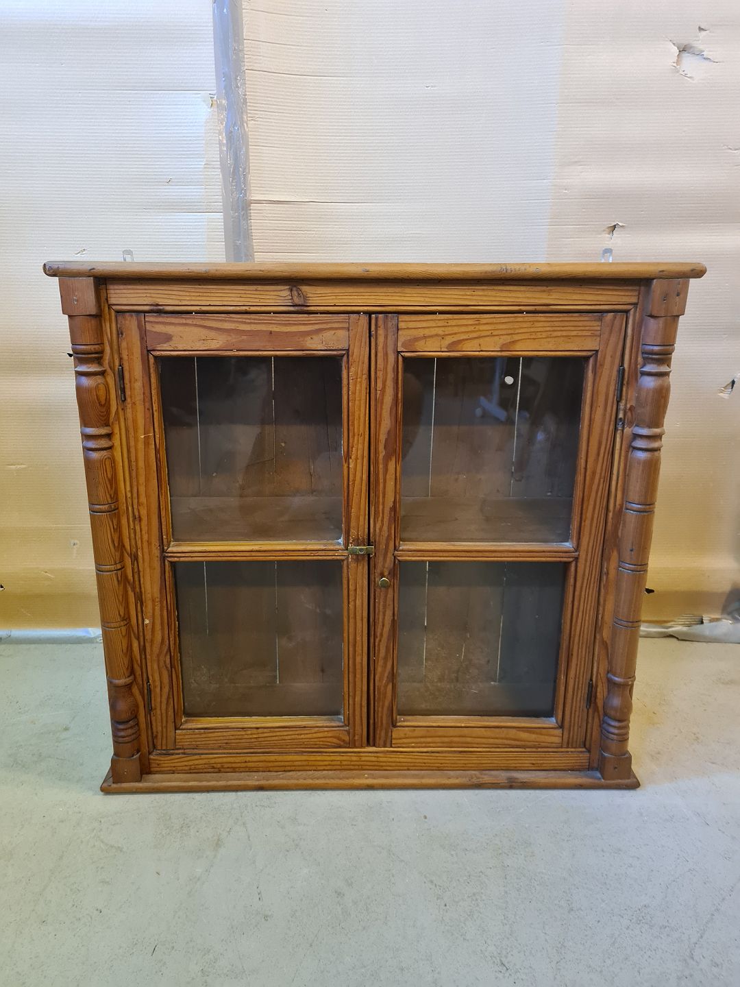 Vitrineskab i massivt fyrretræ, fra 1920erne.