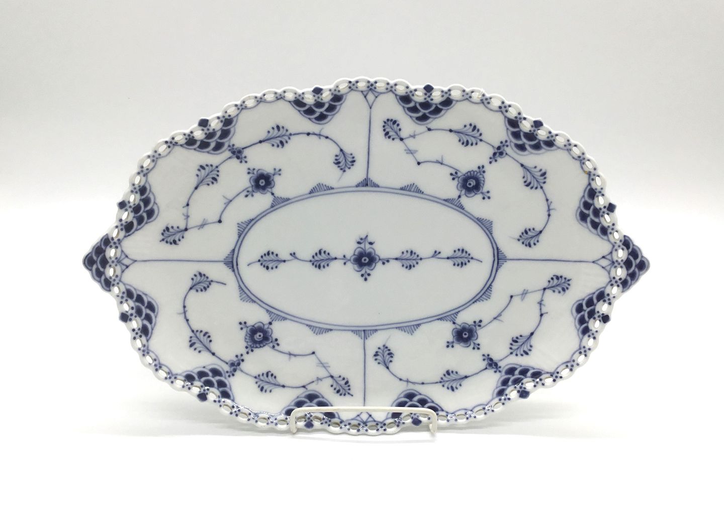 Royal Copenhagen, Musselmalet helblonde, oval underfad til frugtkurv fra perioden 1894 - 1900