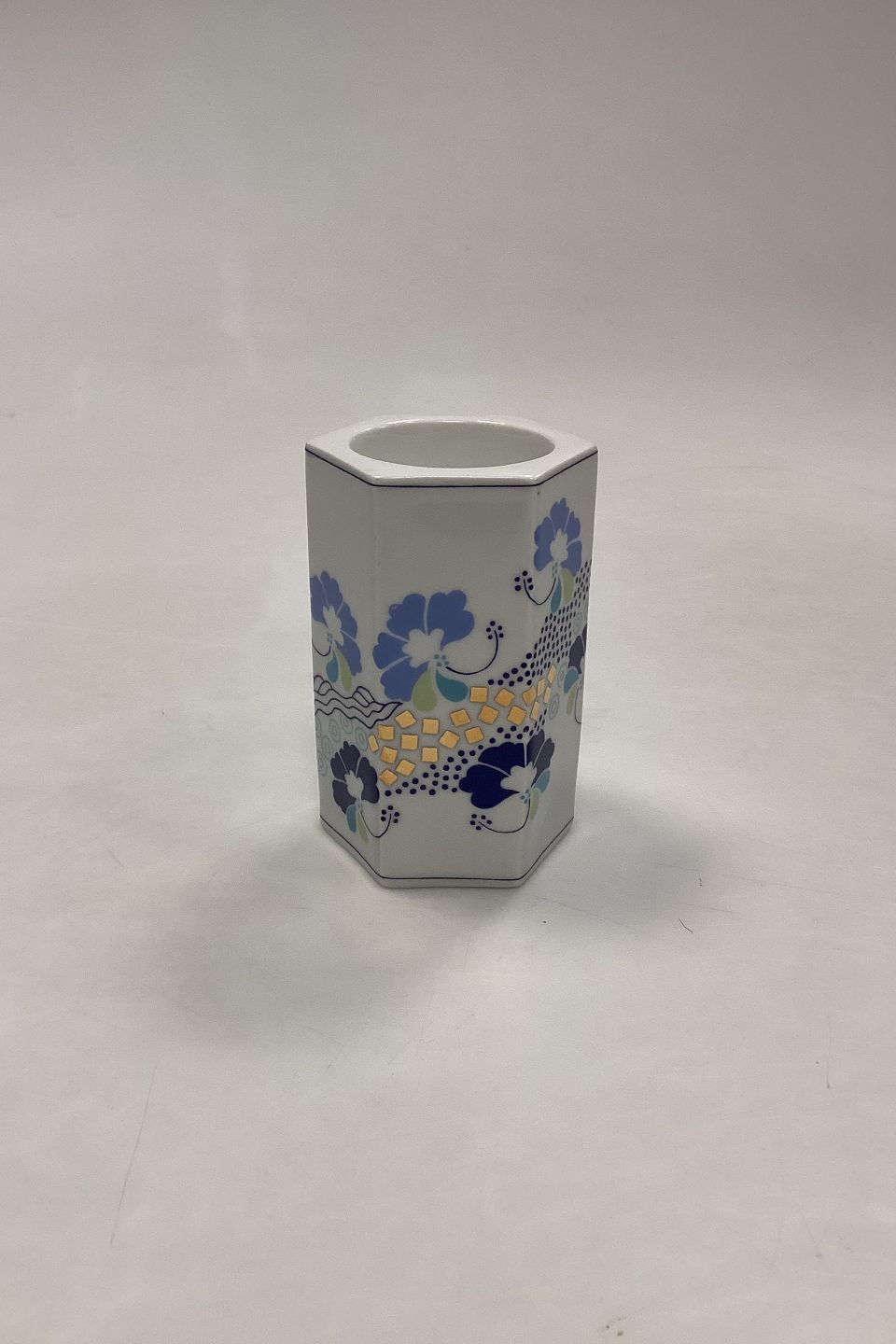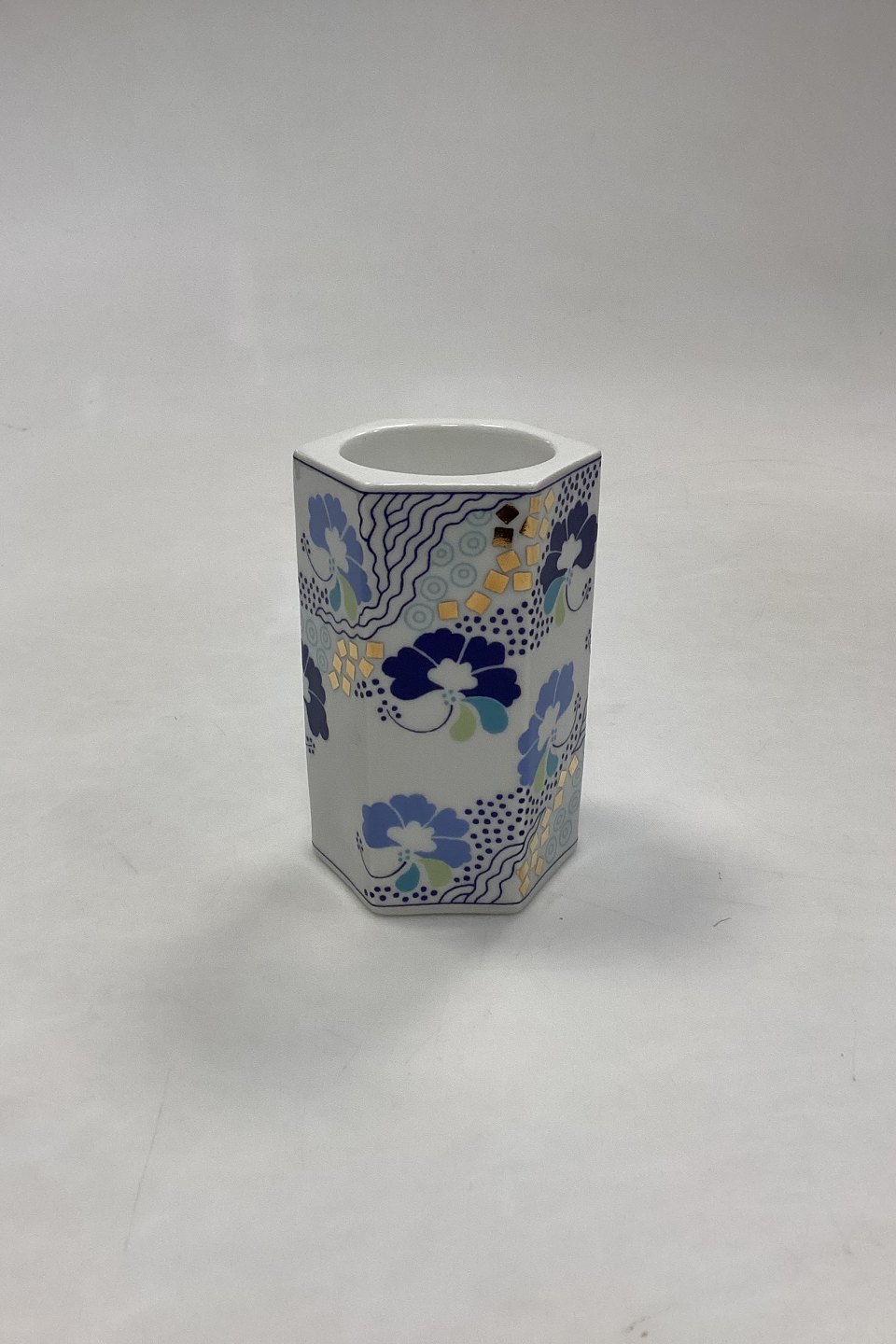 Bing og Grøndahl Fyrfadslysestage af Annegrete Halling-Koch No. 1817/5465. Blå nuancer med guld.