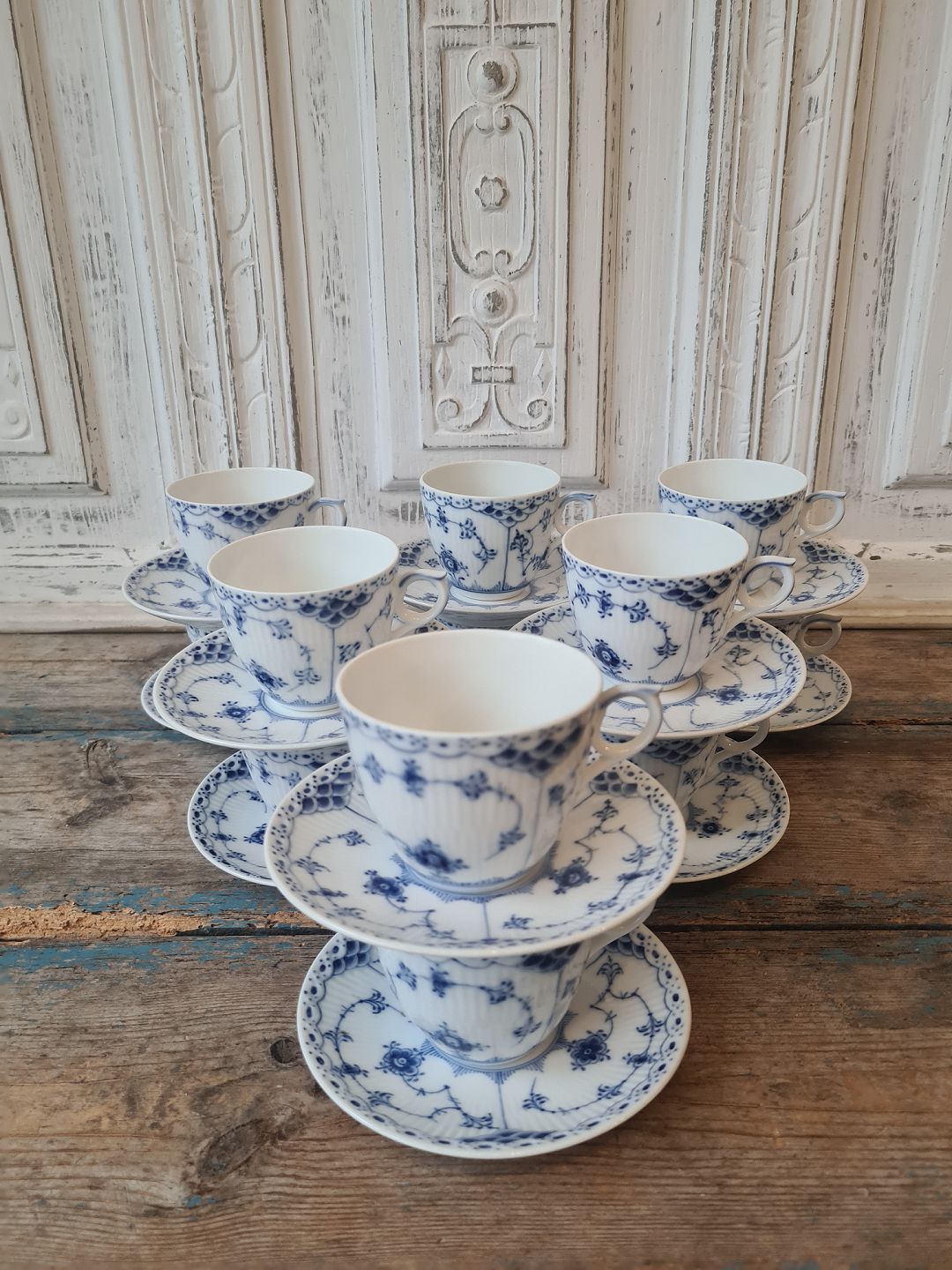 Royal Copenhagen Musselmalet halvblonde sæt på 12 kaffekopper