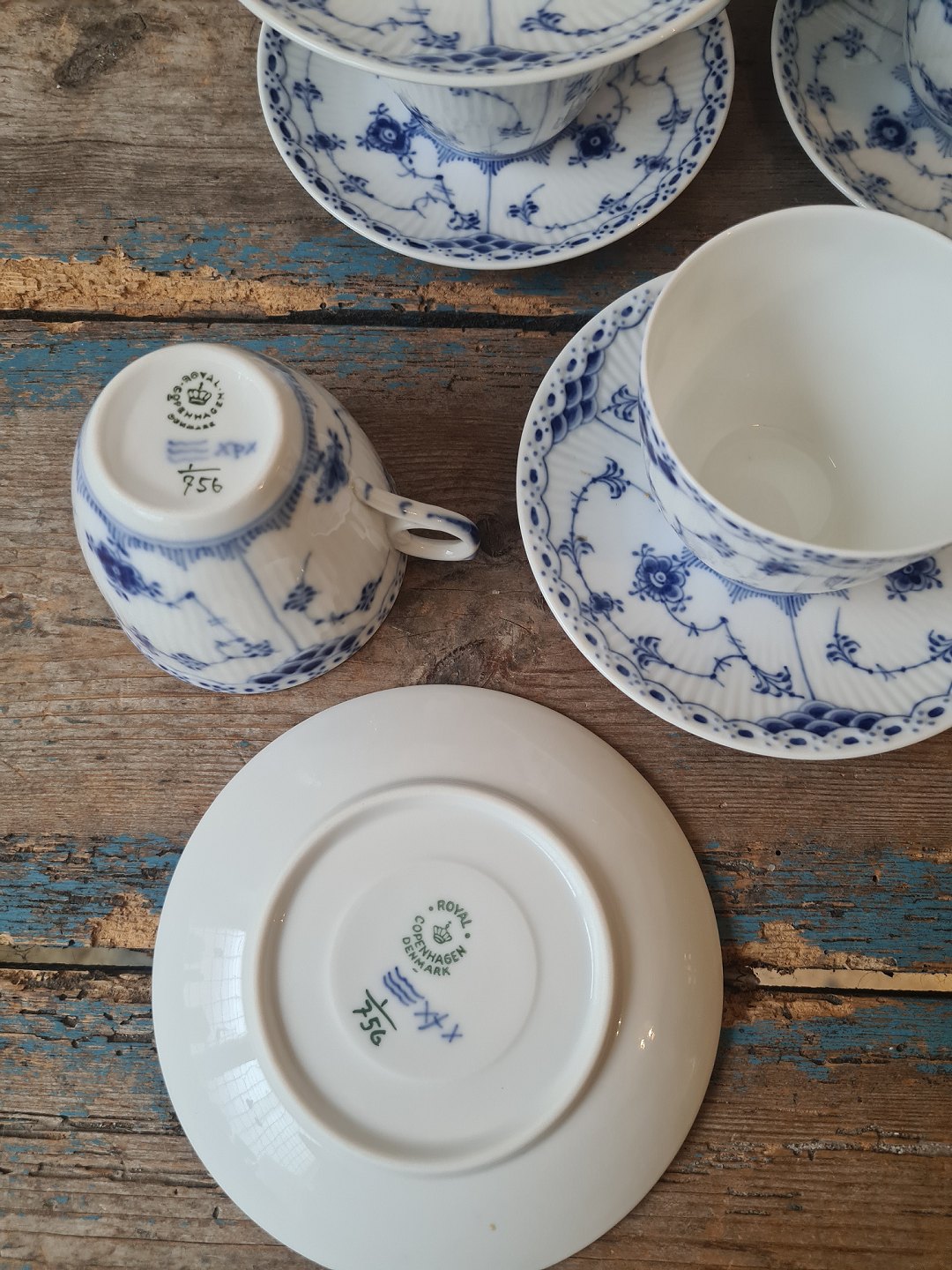 Royal Copenhagen Musselmalet halvblonde sæt på 12 kaffekopper no. 756