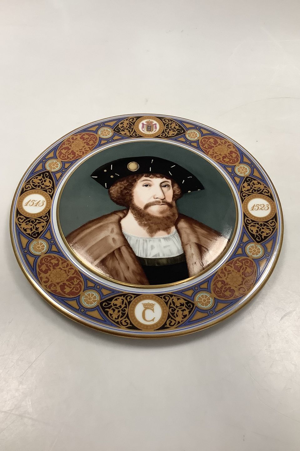 Bing og Grøndahl Platte fra Kongesamlingen, Kong Christian II No 11402 Oplag: 5000 stk. Måler 23 cm(9 1/16 in.)