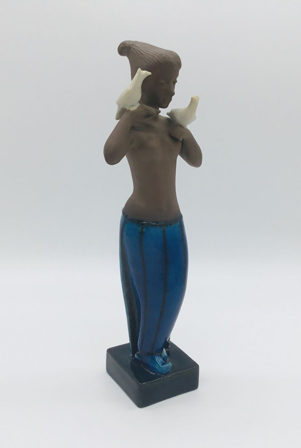 Royal Copenhagen, Johannes Hedegaard Teracotta figur med duer. I hel og fin stand.