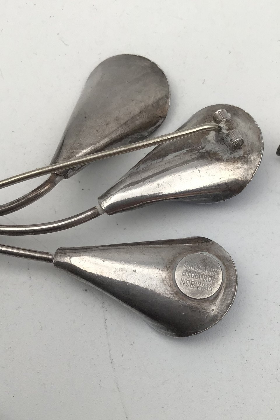 J Tostrup, Norge Sterling Sølv Emalje Smykkesæt (Broche + Øreringe) Måler 5.3 cm x 4.7 cm, 3.7 cm x 3.2 cm, 2 cm x 1.5 cm og 2.6 cm x 1.5 cm (2.08 inch x 1.85 inch, 1.45 inch x 1.25 inch, 0.78 inch x 0.59 inch og 1.02 inch x 0.59 inch) Samlet vægt 31.0 gr (1.09 oz)
