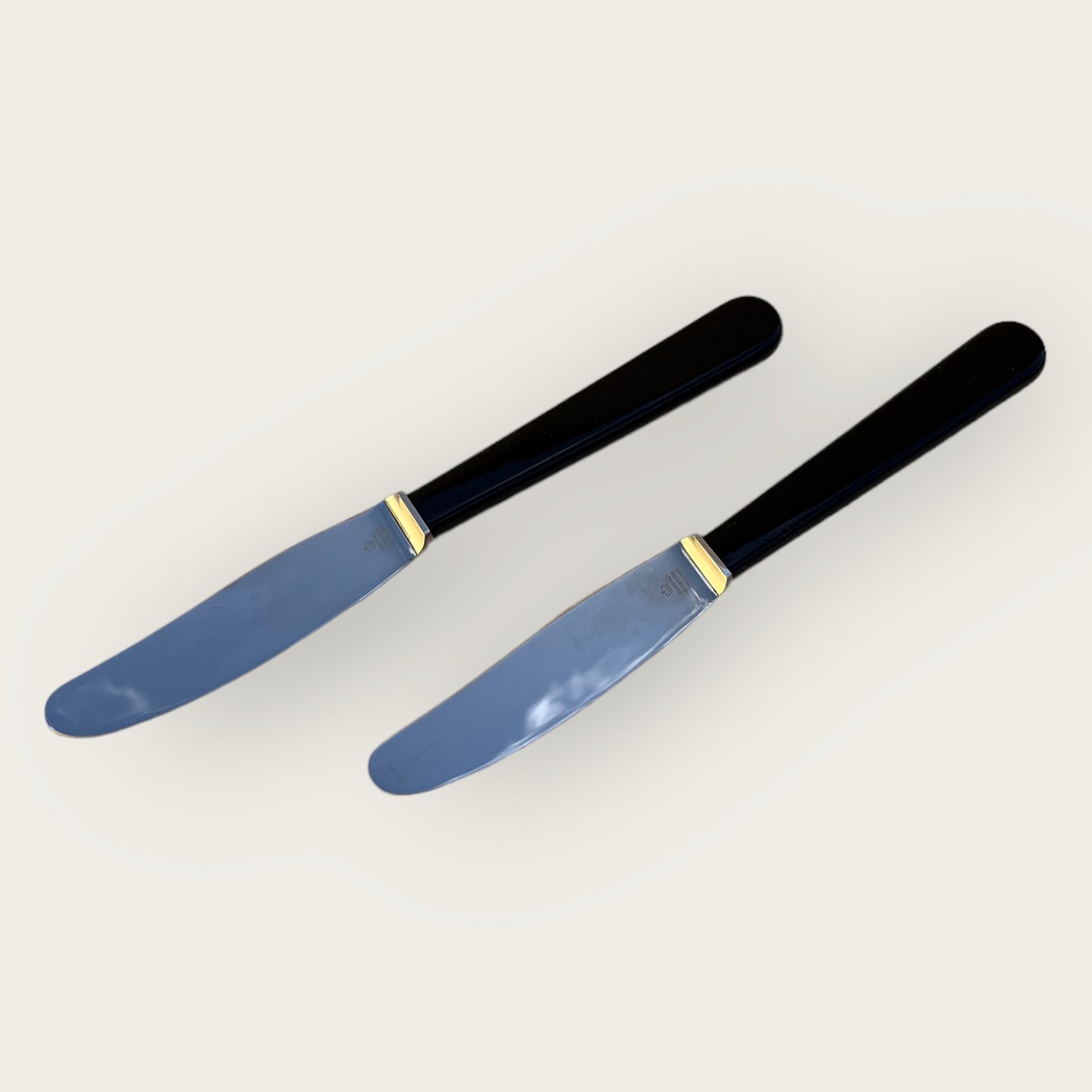 Raadvad, Middagsknive med skaft i sort kunststof og blad i rustfrit stål, Sæt med 6 stk. i æske, 21cm lang *Perfekt stand*