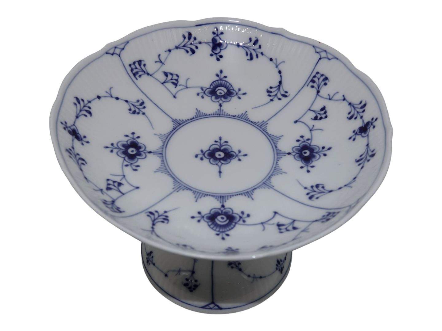 Royal Copenhagen Musselmalet Riflet, lille kageopsats på fod.