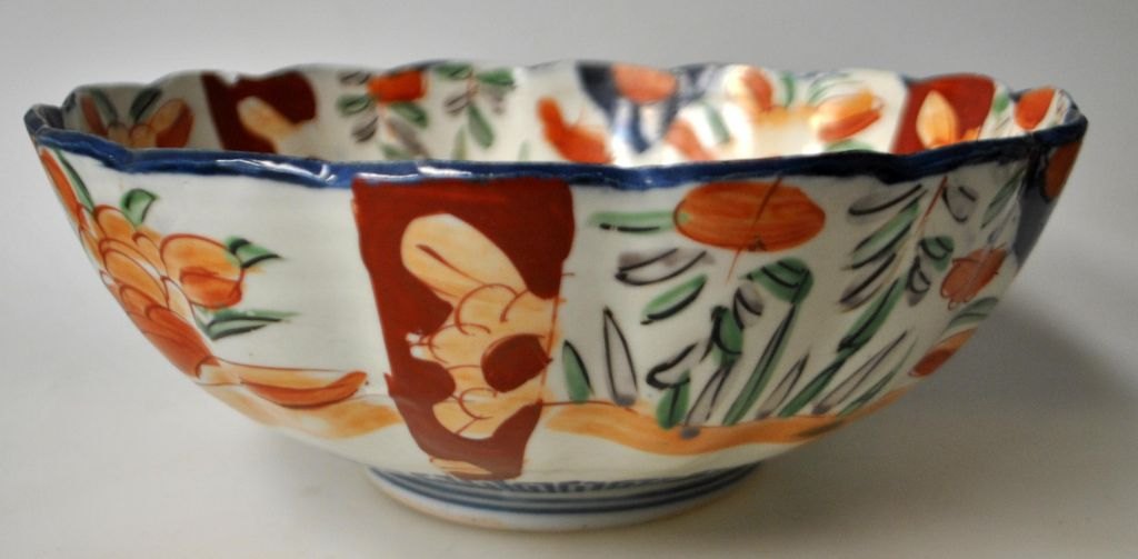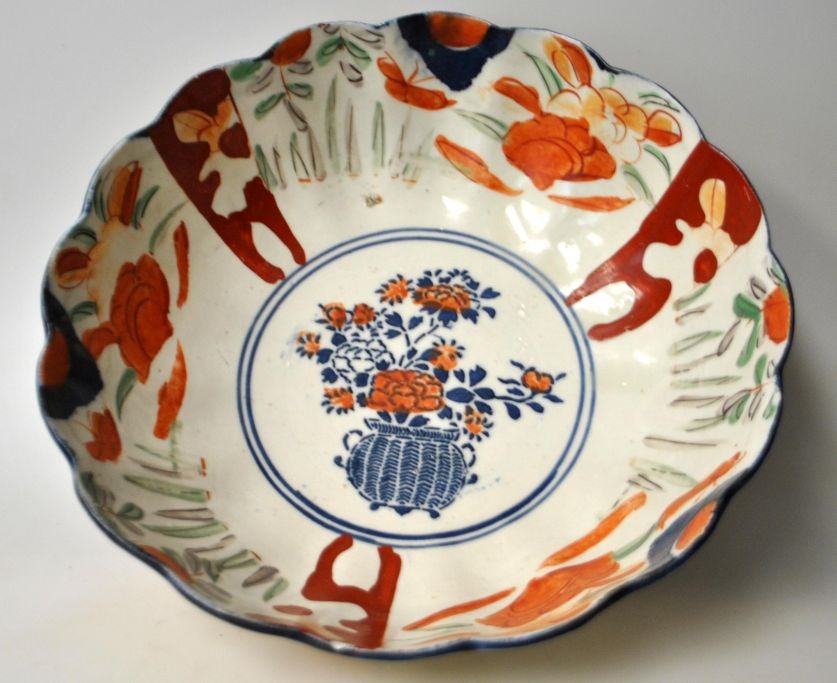 Imari skål i porcelæn, 19. årh. Japan. Polykrom dekoreret. Flæset kant. Ustemplet. H.: 10,5 cm. Dia.: 24,5 cm.