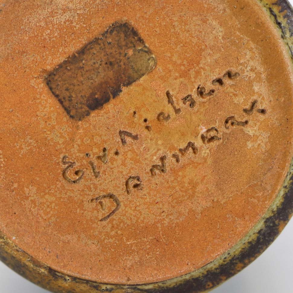 Mellemstørrelse slank vase af stentøj brun i grønbrune nuancer