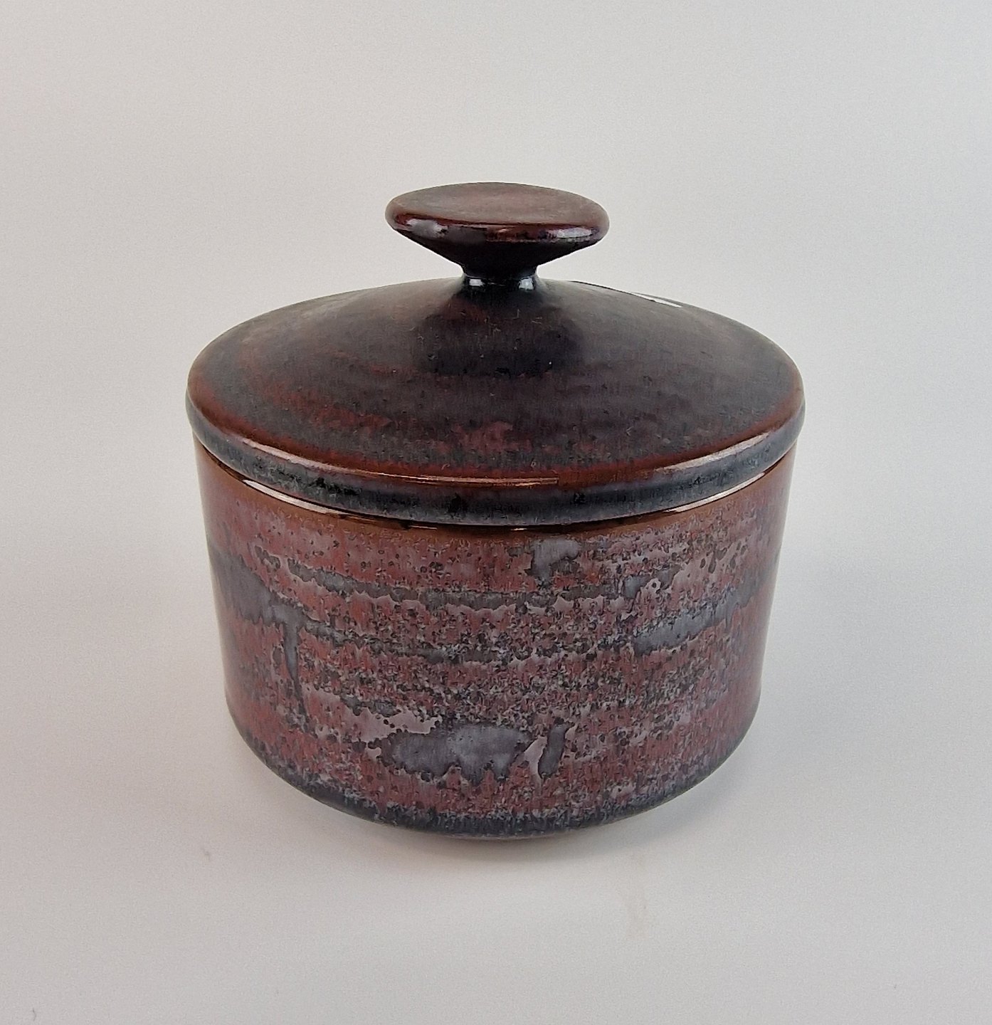 Skål med låg i stentøj fra stellet Thule