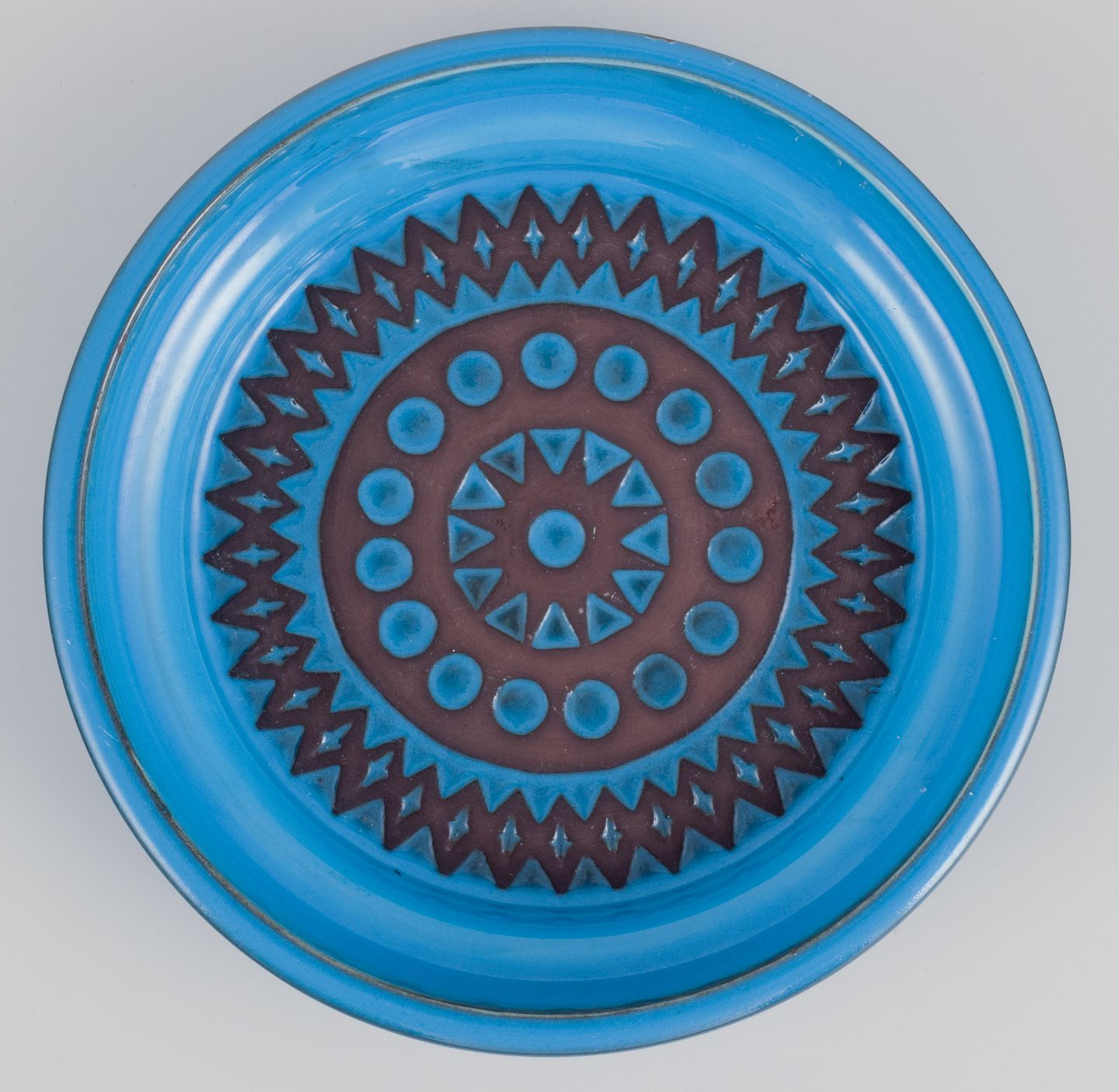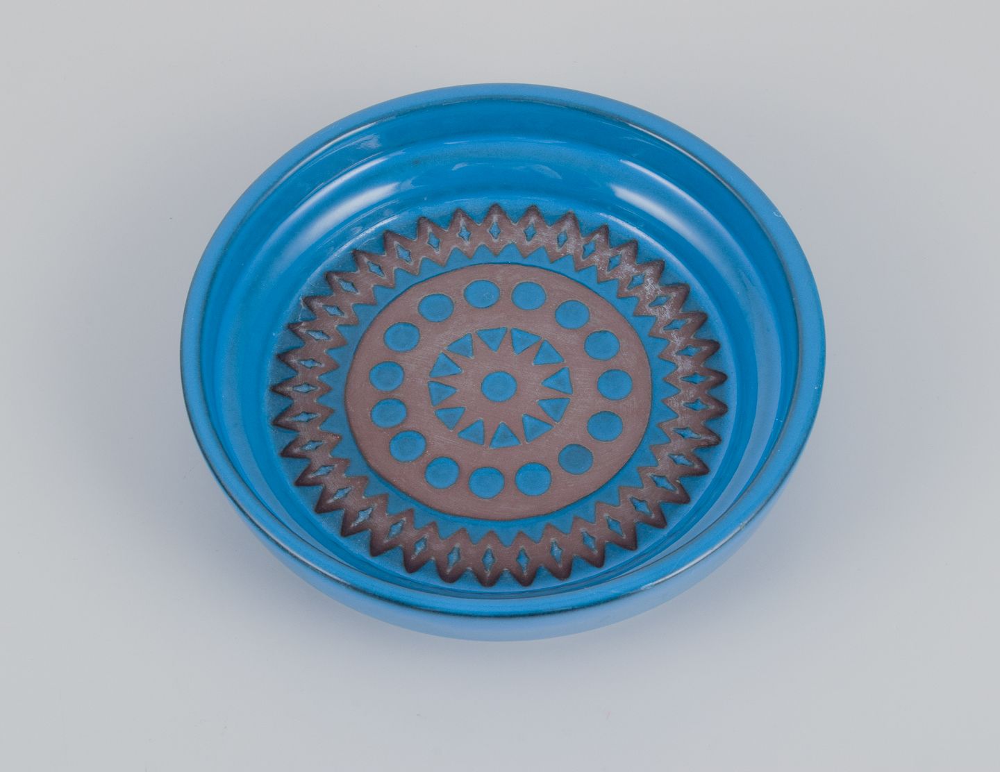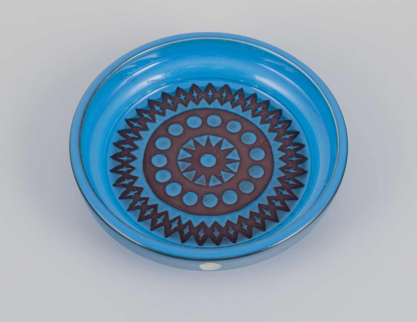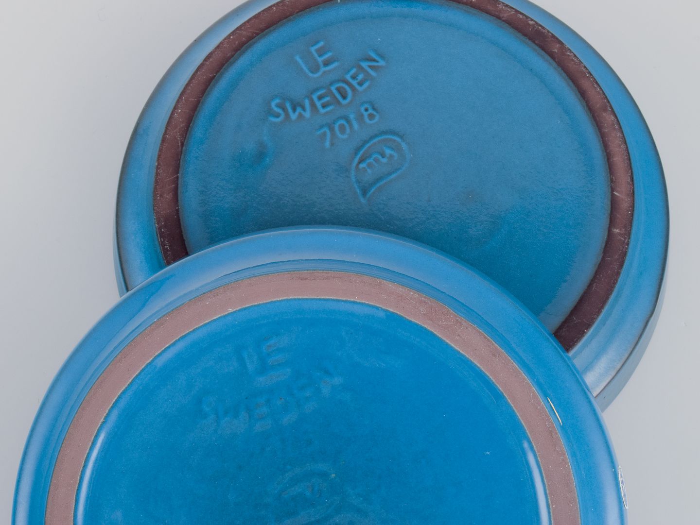 Mari Simmulson (1911-2000) for Upsala Ekeby, Sverige. Et par lave keramikskåle med glasur i blå nuancer.