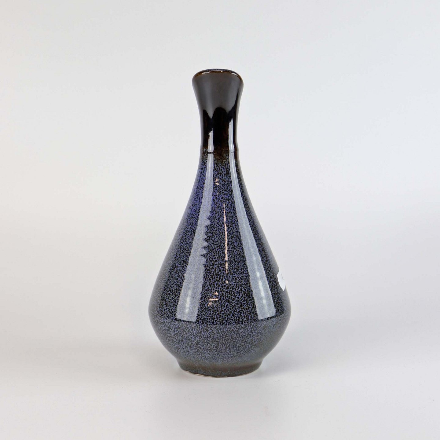 Vase af stentøj i meleret blå og sorte farver